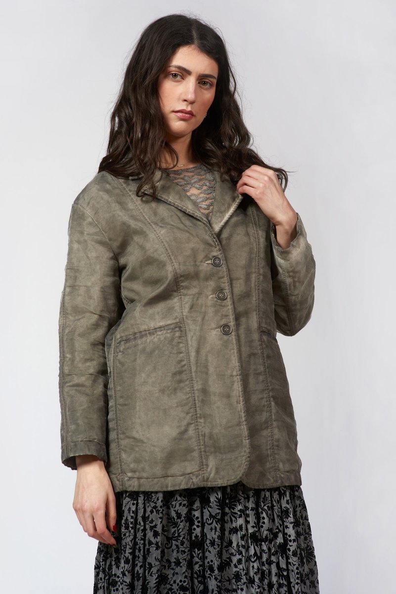 Lightweight jacket featuring a double-layer construction with a sheer organza overlay. The inner layer offers subtle structure, while the translucent exterior adds depth and movement. Designed with a relaxed silhouette and clean lines for an understated, modern finish.