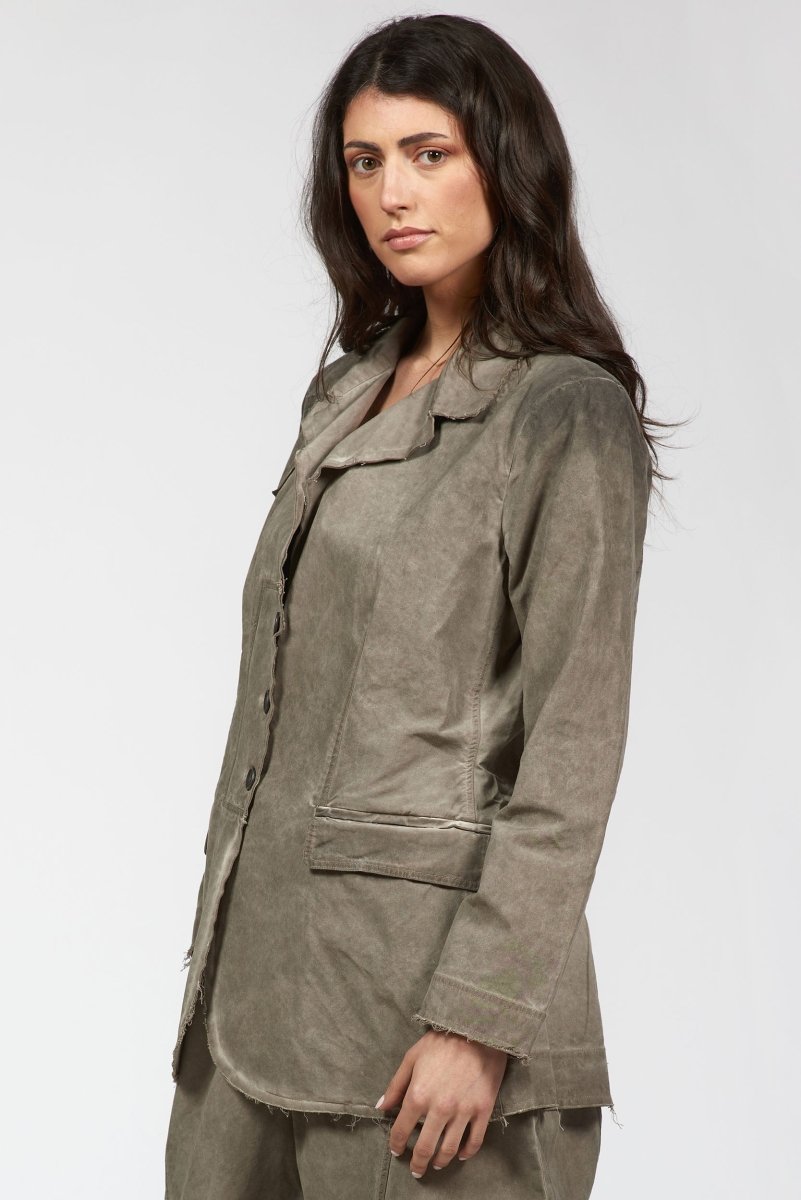 This jacket is a must have for your closet, a versatile layering piece that merges tailored structure with a lived-in finish. Featuring a classic notched lapel collar, three-button front closure, and two flap front pockets for functional flair.