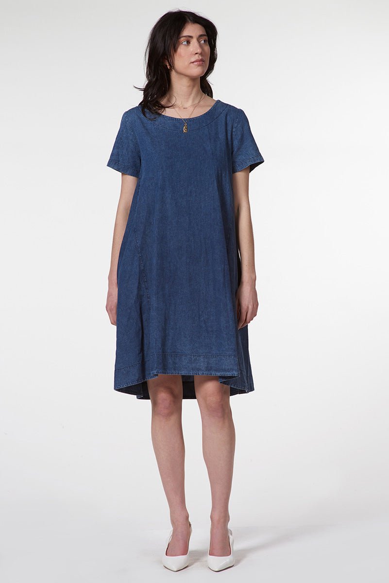 Short Sleeve Denim Dress with Round Neckline