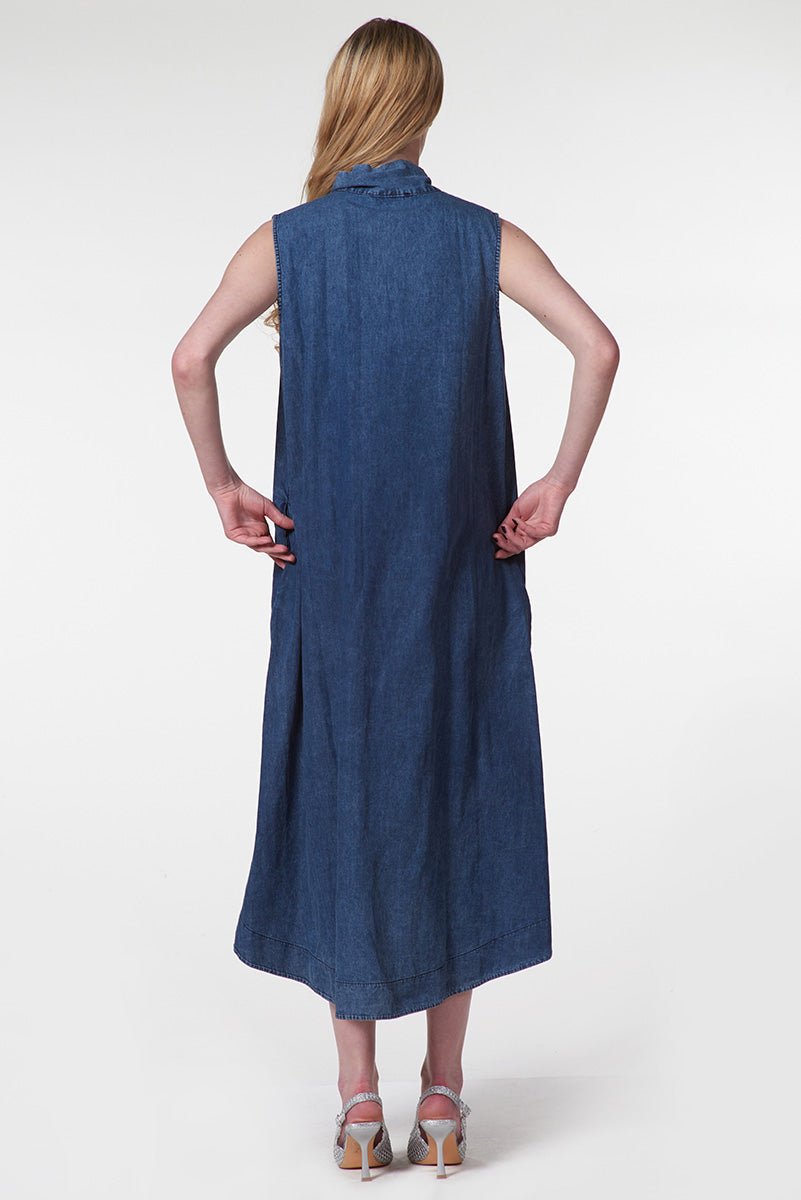 Sleeveless Denim Midi Dress with V-Neck