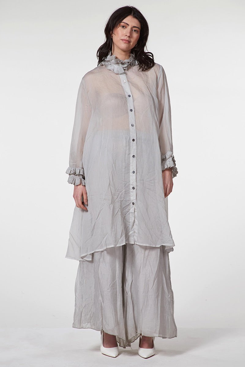 Bring effortless charm to your wardrobe with our Tunic with Ruffles on Sleeves and Neckline. The delicate ruffle details add a playful, feminine touch, while the lightweight fabric ensures all-day comfort. Pair it with jeans, leggings, or tailored pants for versatile style from brunch to the office.