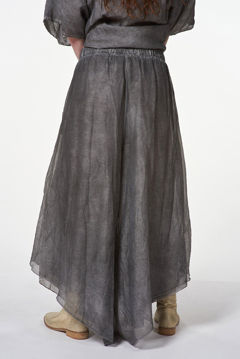 Defined by an asymmetric cut, these palazzo pants introduce subtle tension to a fluid, wide-leg silhouette. The draped fabric moves with ease, creating a sense of effortless sophistication and modern balance.