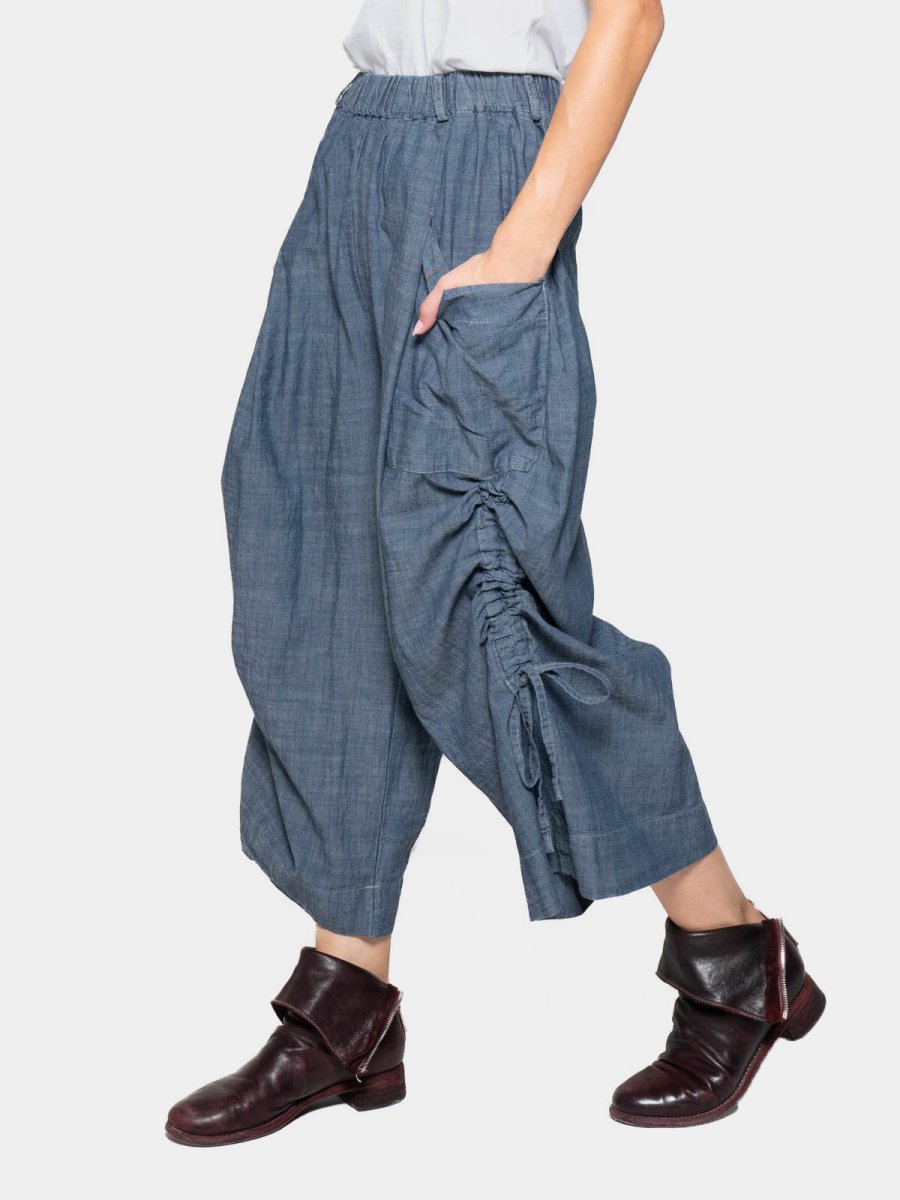 With their unique tie detail and side pockets, these cropped trousers combine flair and functionality in a way that is both utilitarian and stylish. The relaxed cut puts a modern spin on traditional tailoring, guaranteeing comfort while also adding a contemporary edge. Perfect for the fashion-forward person, these trousers are a versatile addition to an elegant wardrobe.