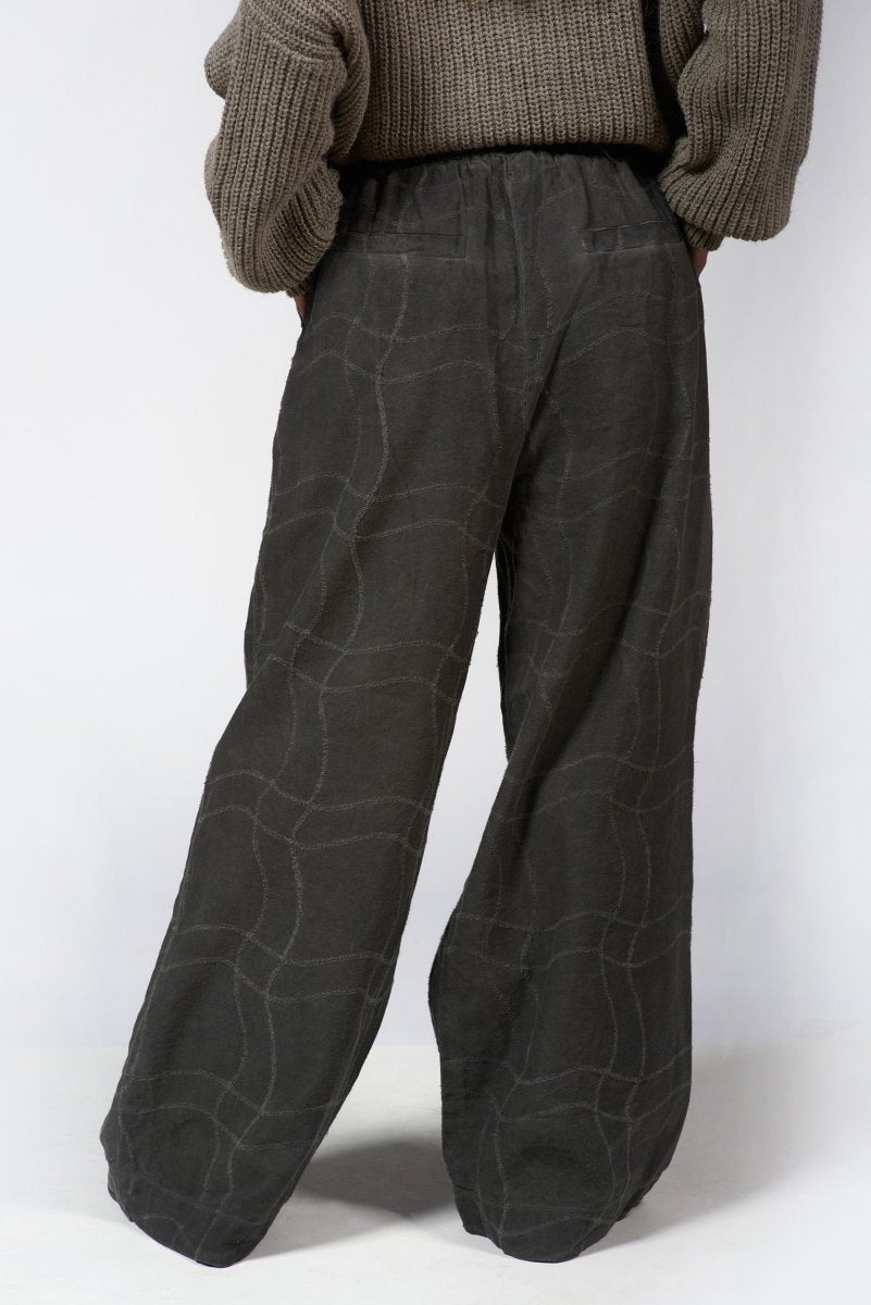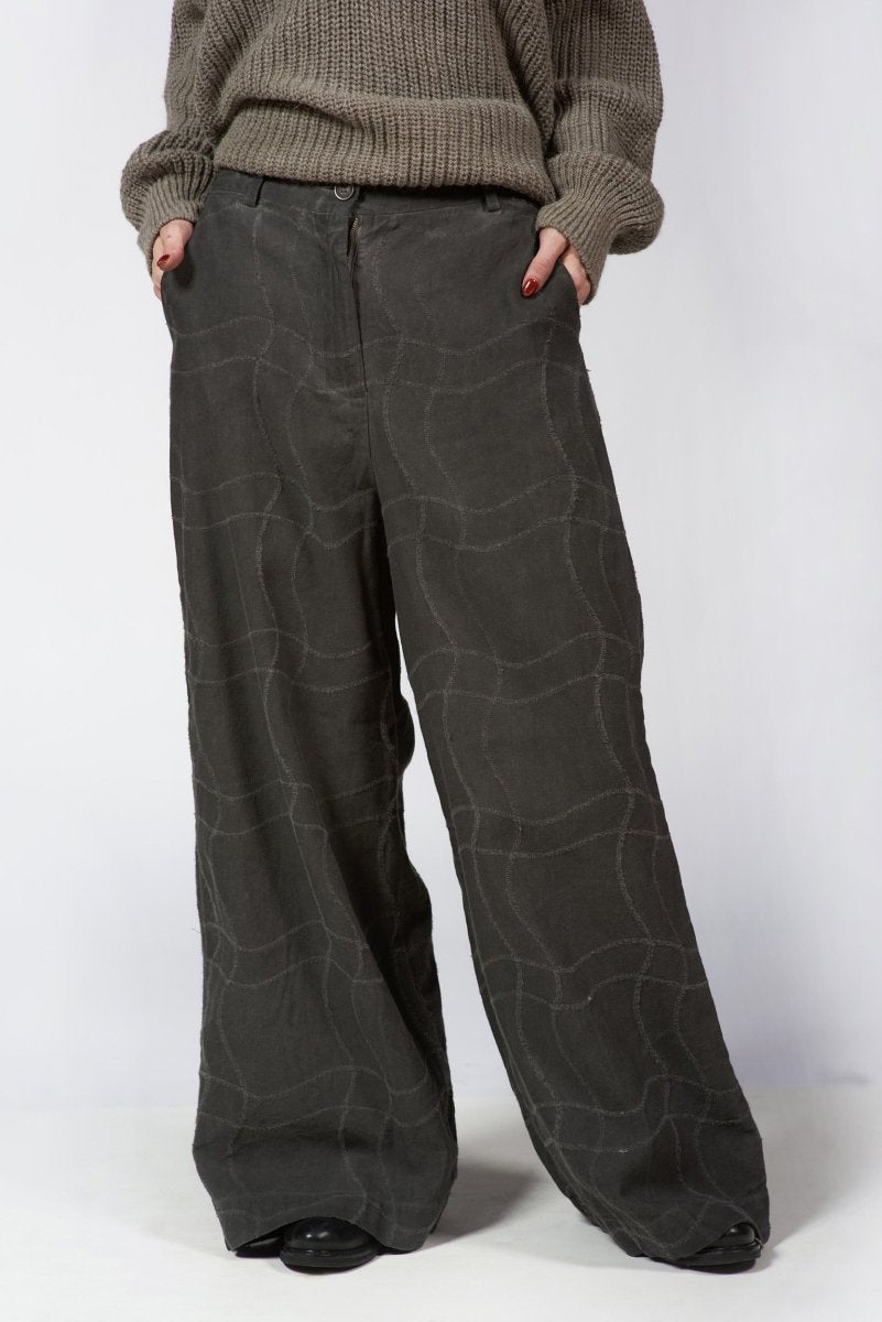 These palazzo pants capture modern elegance with a fluid drape and understated jacquard texture. The wide-leg design flows beautifully with every step, offering a refined yet relaxed presence suited to any occasion. Pair them with a crisp shirt or soft knit to create a look that's effortlessly balanced and refined.