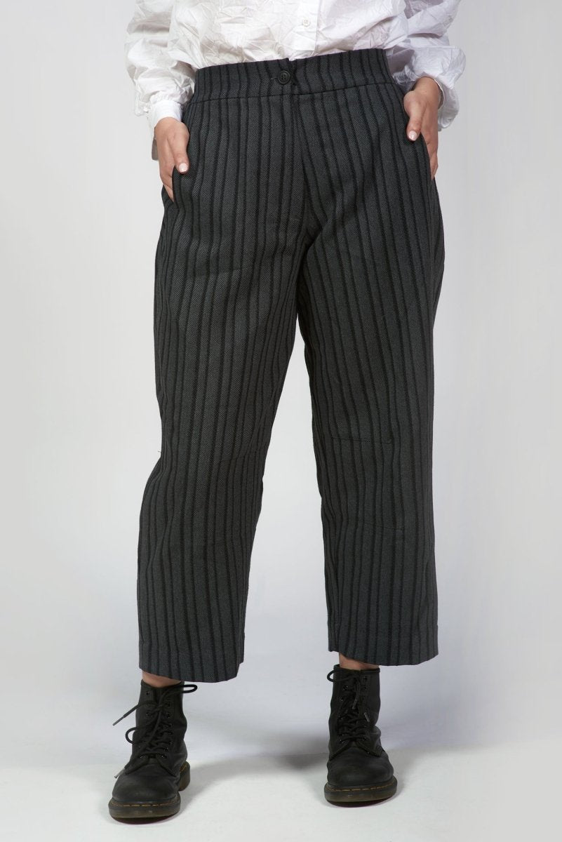 Step into modern tailoring with these Striped Pants with Knee Darts. The silhouette features a straight-leg, slightly tapered cut that flatters the body without feeling restrictive. A classic button-and-zip front closure anchors the look, while the subtle pinstripe pattern elongates the leg for a sleek, tailored appearance. Pair them with crisp shirts, soft knits, or oversized blouses for endless versatility.