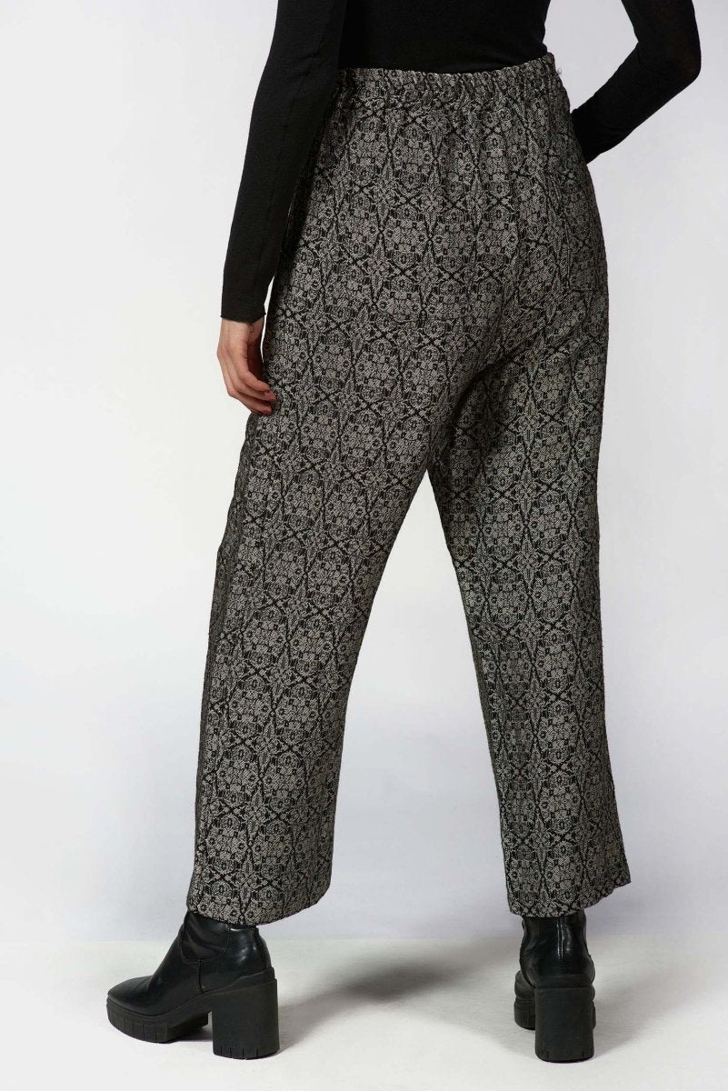 The perfect textured jacquard wool-blend pants to either dress up for the holidays or business attire, or dress down for everyday errands. The straight-leg silhouette drapes beautifully on the body. The elastic waistband provides an easy pull-on fit.