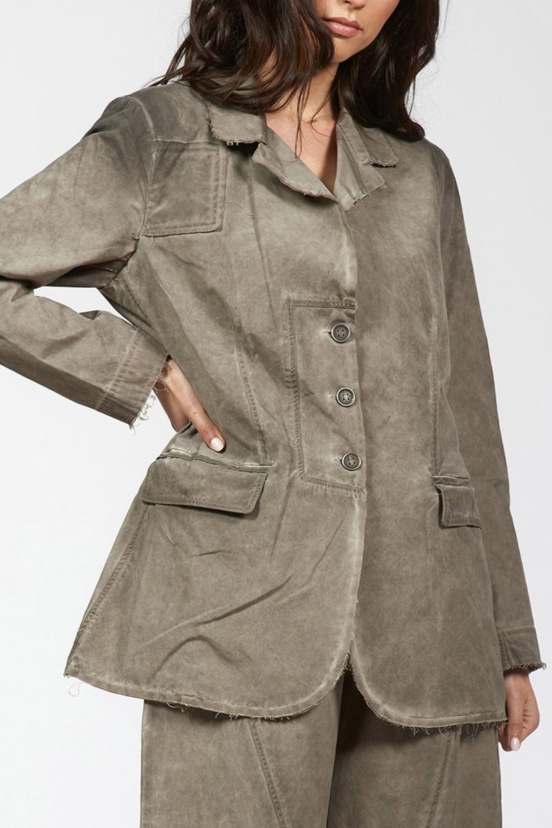 This jacket is a must have for your closet, a versatile layering piece that merges tailored structure with a lived-in finish. Featuring a classic notched lapel collar, three-button front closure, and two flap front pockets for functional flair.