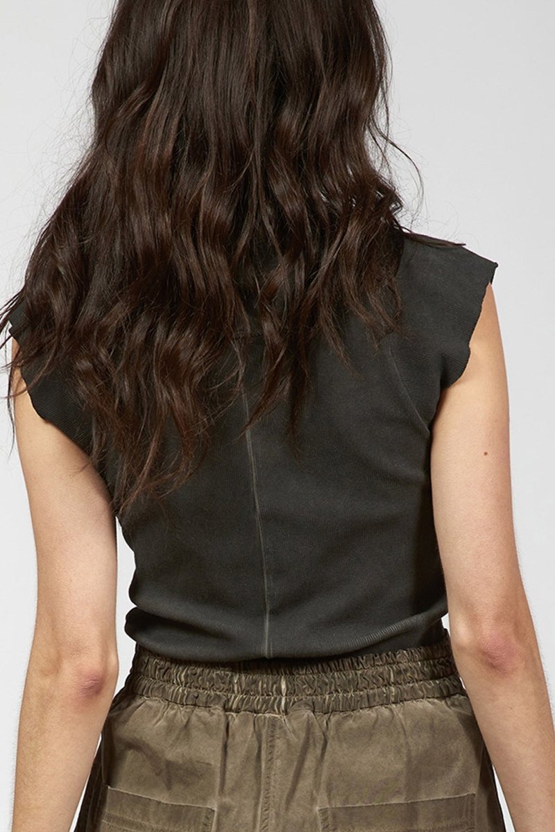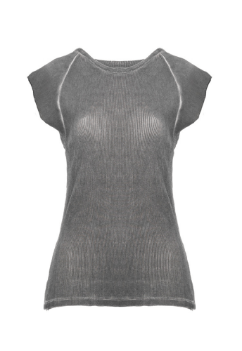This Short Sleeve Ribbed Top is cut in a fitted silhouette that contours the body with soft precision. Crafted from a washed cotton blend, it offers a gently faded finish. Raglan-style short sleeves and exposed seam detailing add a touch of edge, while the scoop neckline frames the collarbone.