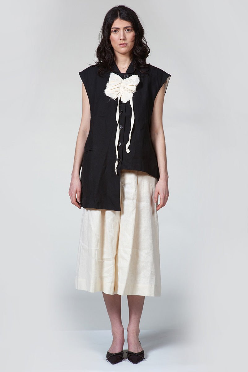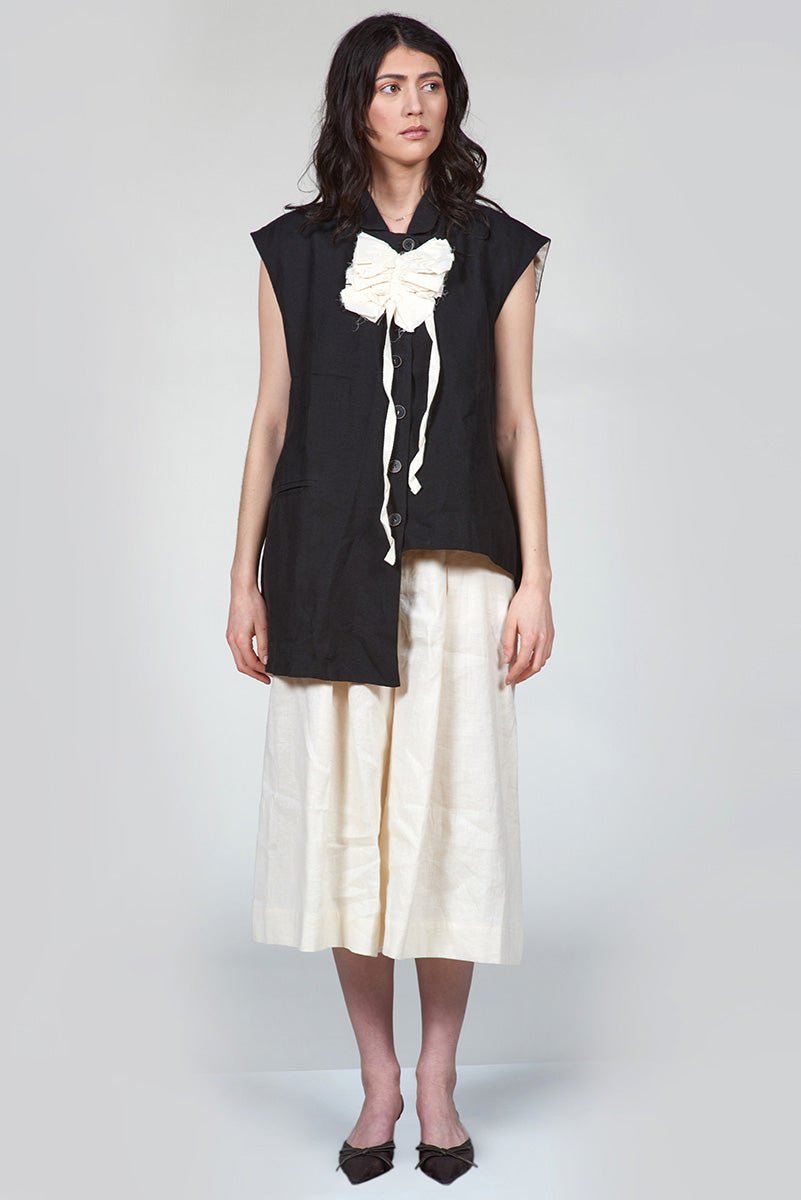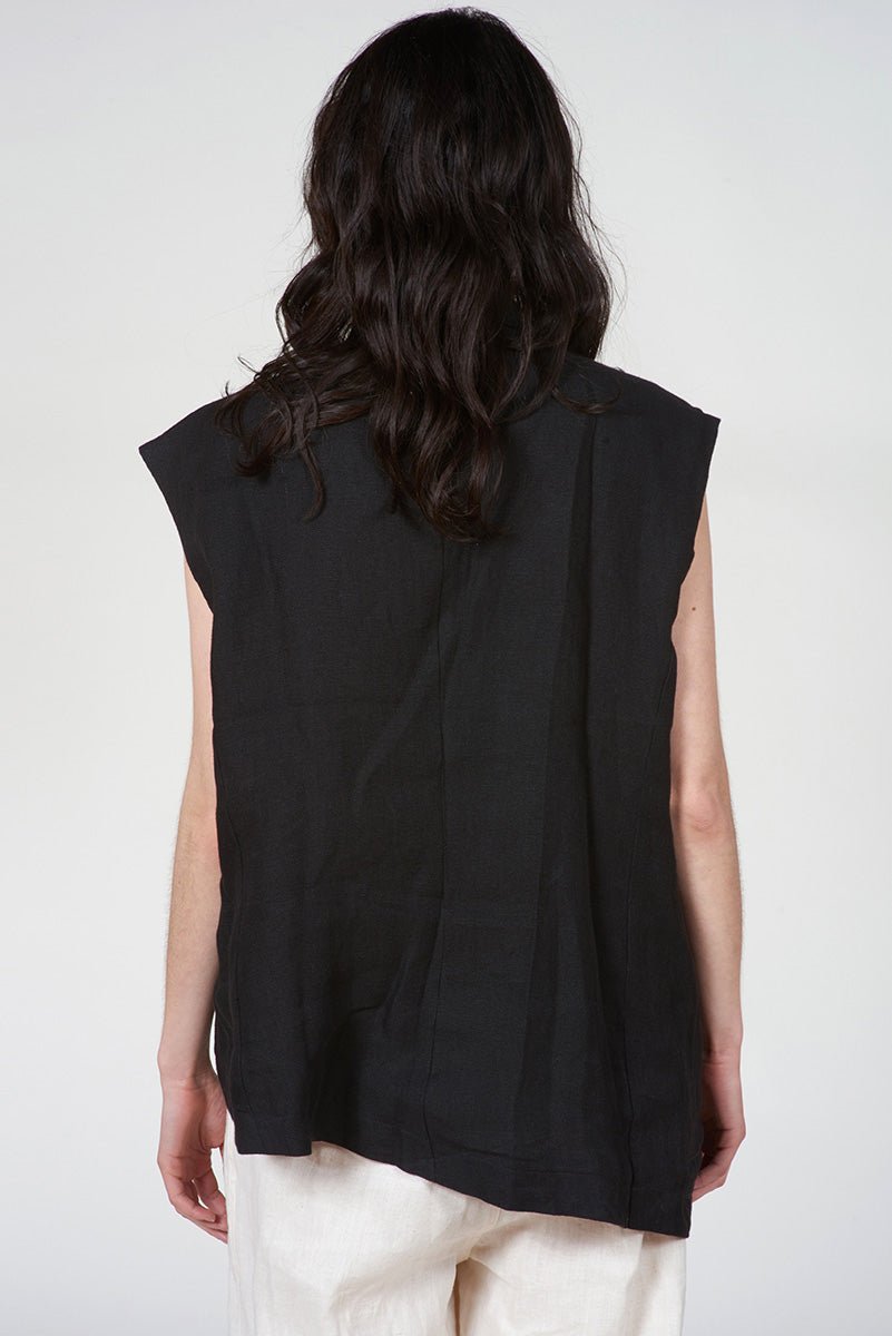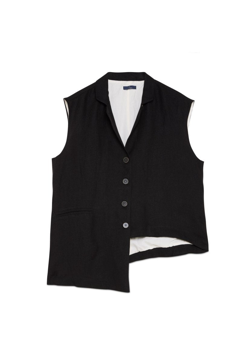 An asymmetric silhouette lends a modern edge to this tailored vest, defined by clean welt pockets that sharpen its architectural lines. Precision construction balances structure and ease, creating a clean and yet directional presence. Designed to layer effortlessly while standing on its own.