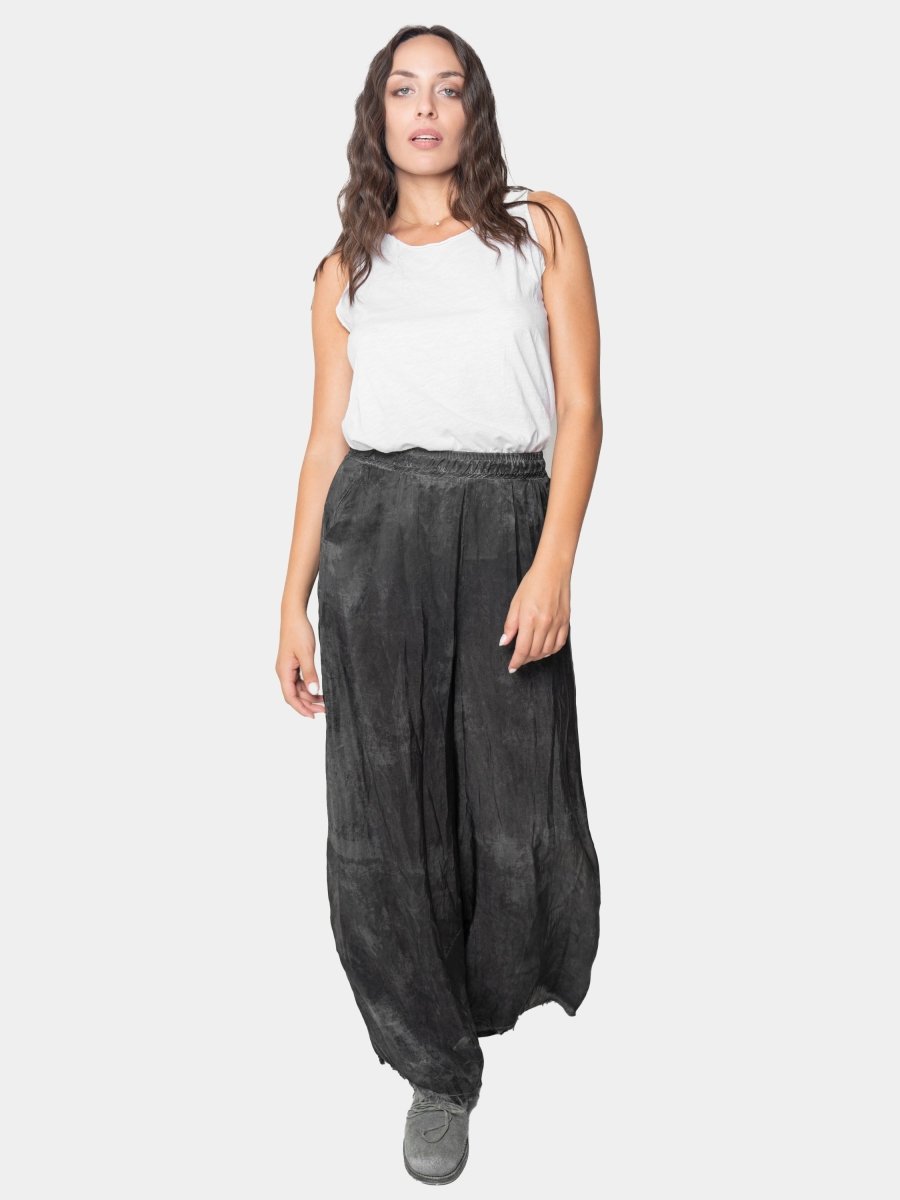Featuring a relaxed wide-leg fit and subtle raw-edge detailing, these lightweight trousers bring texture and ease to everyday styling. The soft, fluid fabric drapes beautifully, while the elastic waistband offers all-day comfort. Designed for movement and simplicity, they're an effortless essential with a lived-in feel.