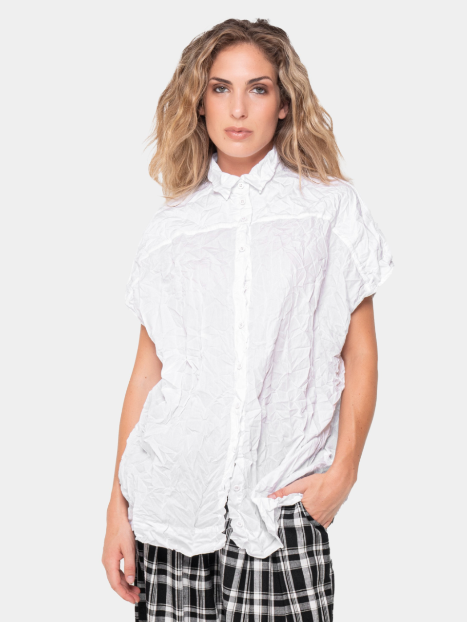 Featuring a boxy silhouette with a distinctive crinkled texture, this shirt offers relaxed comfort and effortless style. Easy to pair, it's perfect for casual, everyday wear.