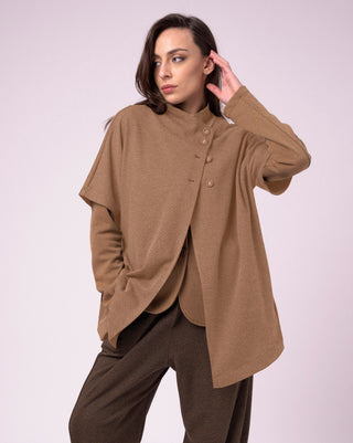 With a relaxed fit and unique three-button detail at the top, this shirt is an effortless statement piece. The asymmetrical front adds a special touch to the already stylish design. Wear it with a pair of high waisted jeans or a skirt for a chic and fashionable look.