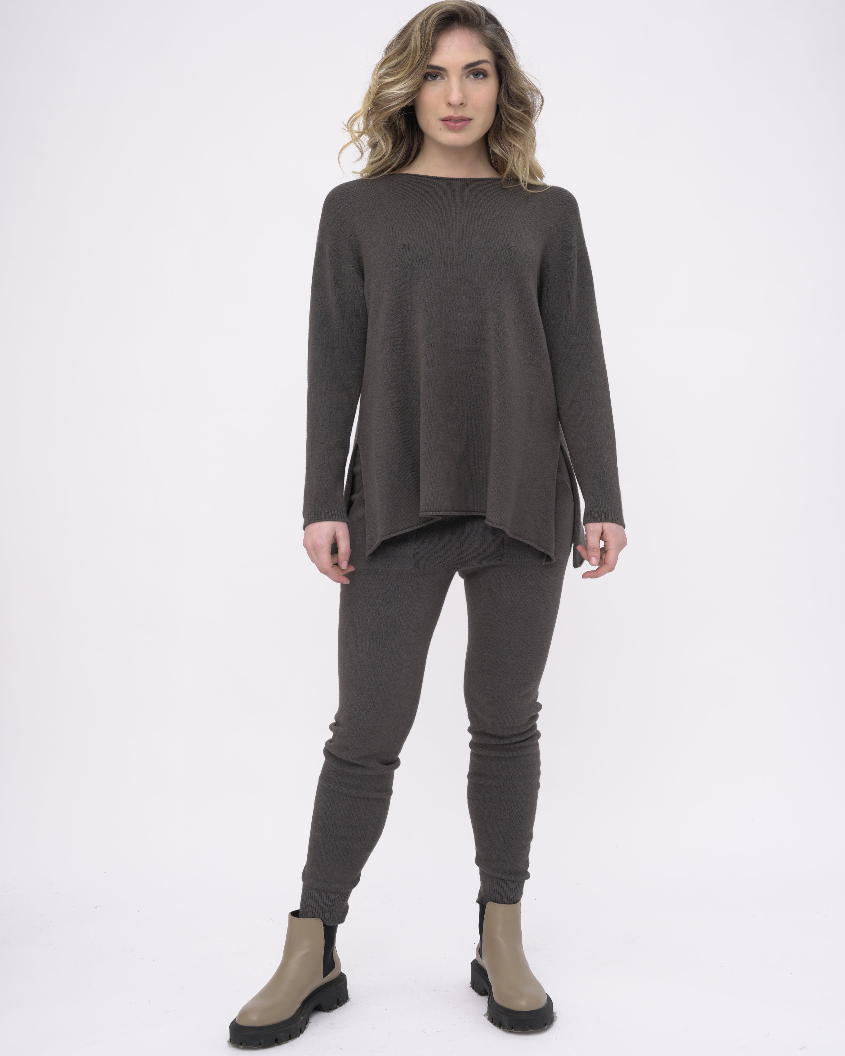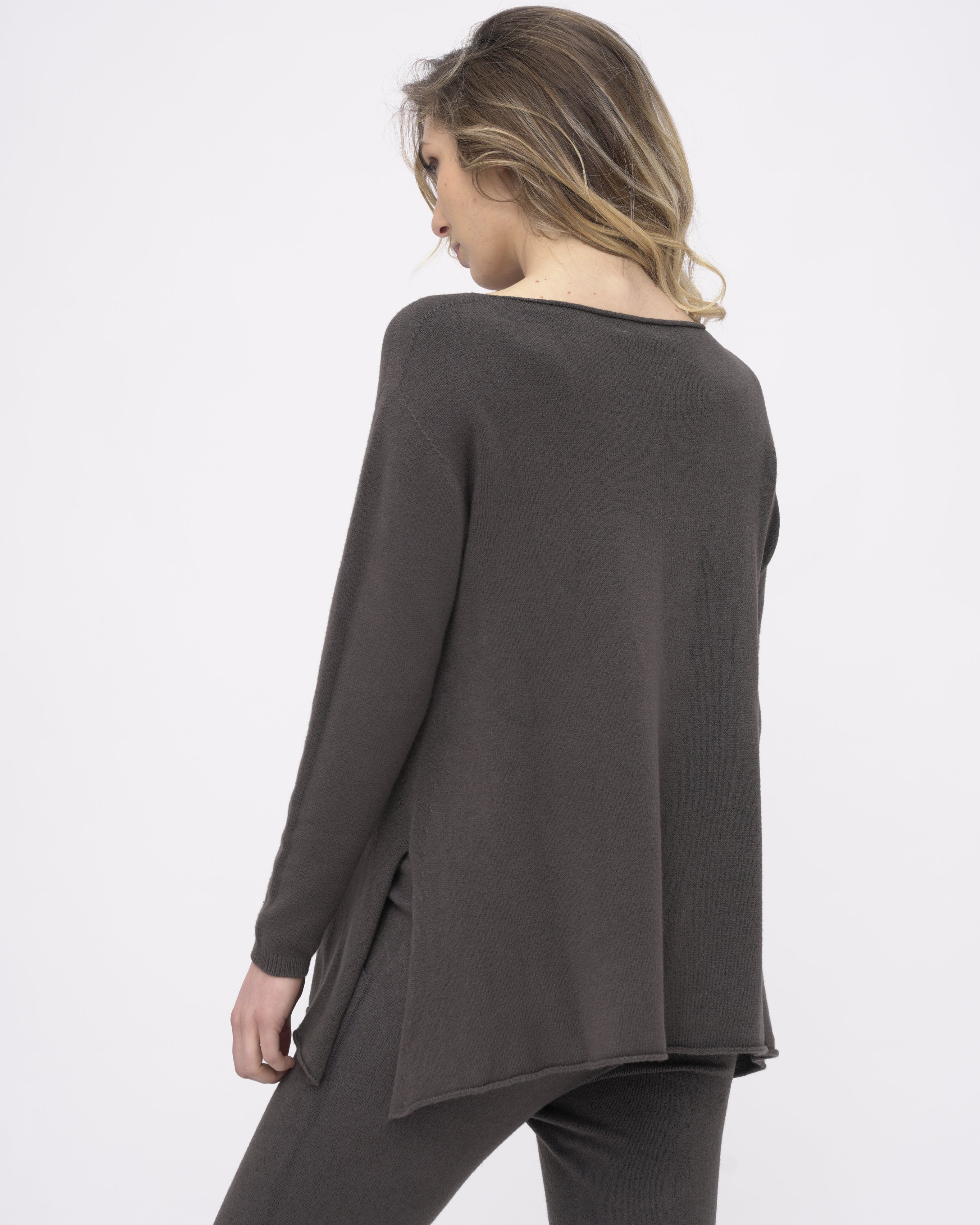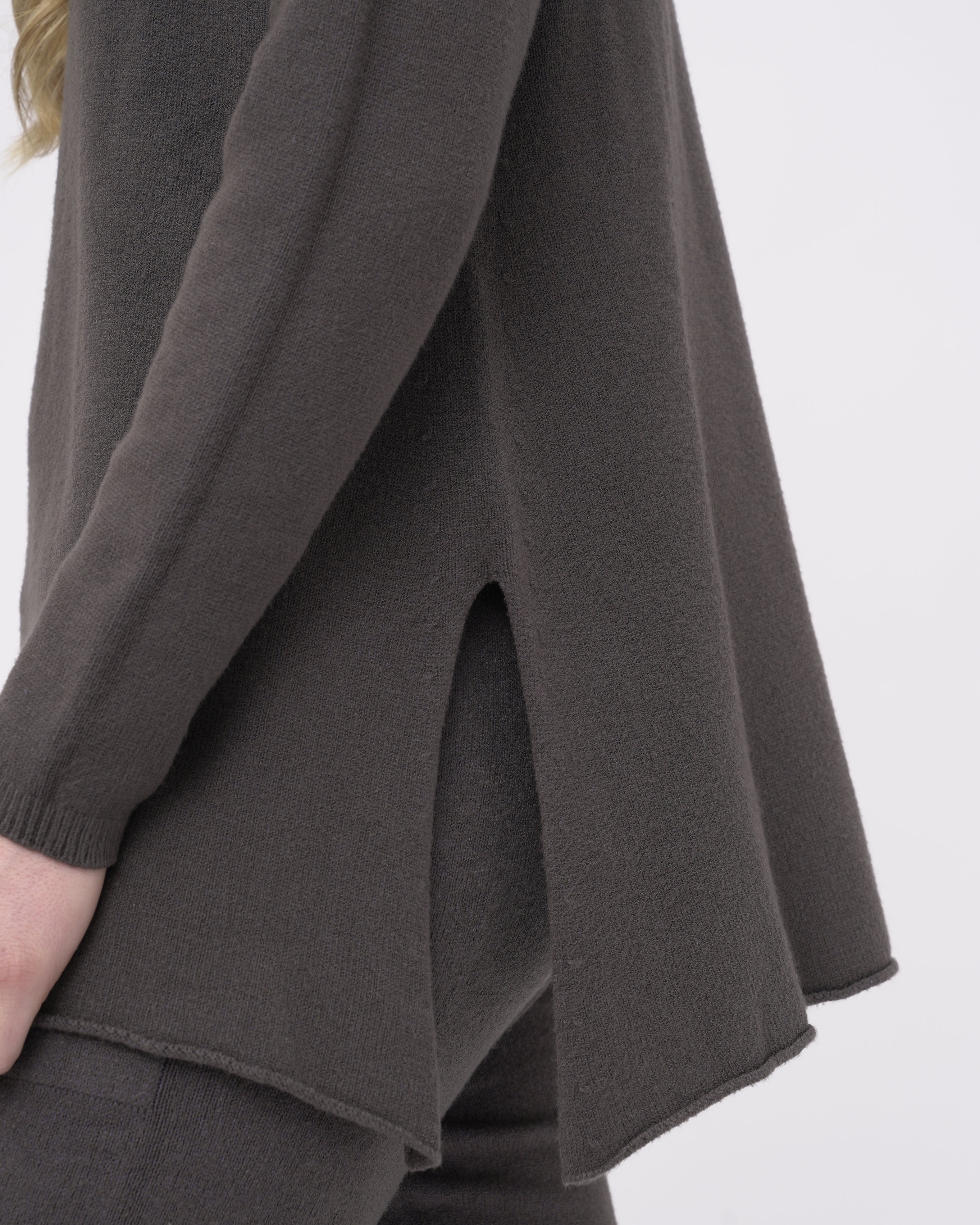 The Boatneck Split Seam Sweater is an essential for your fall/winter wardrobe. Made with a unique fabric blend allows the sweater to feel soft on the skin. Having some stretch and the softness compliments the loose silhouette. Boatneck and the split seam add to the classic silhouette. It is an essential piece for the season that can be worn by itself or is the perfect layering piece for the cooler days of the season.