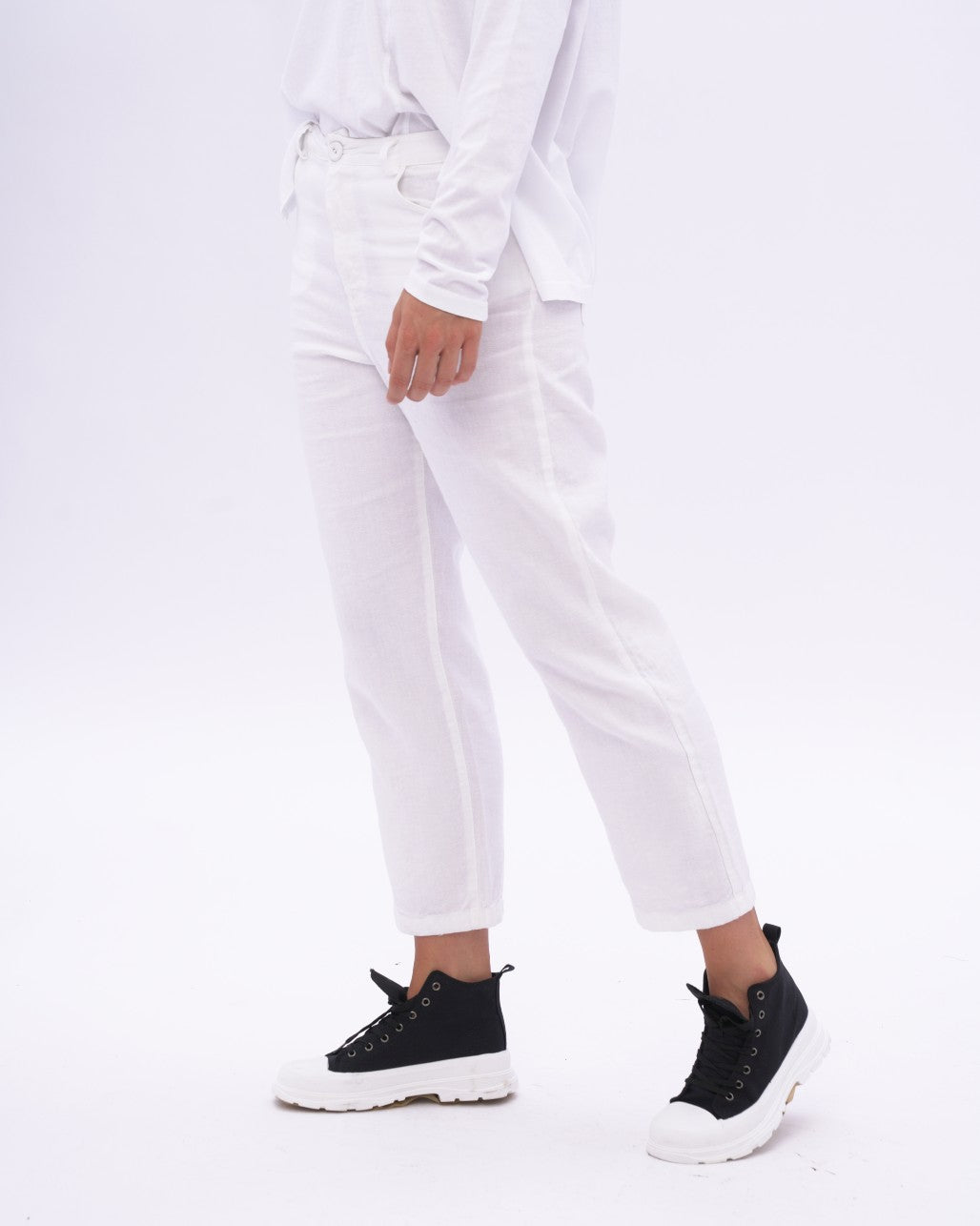 Our take on a jean, this cotton-linen blend pant is not only soft but breathable for those hot days. Pair it with a loose tunic for a fashion forward and fresh look. Or keep it simple with a light t-shirt for any summer activity. With a classic buttoned waist and a slightly cropped bottom, these pants are so easy to pair with any top you have in your wardrobe.