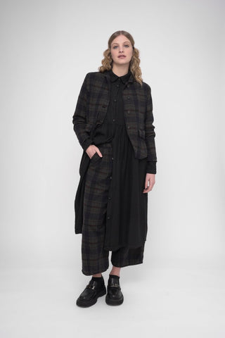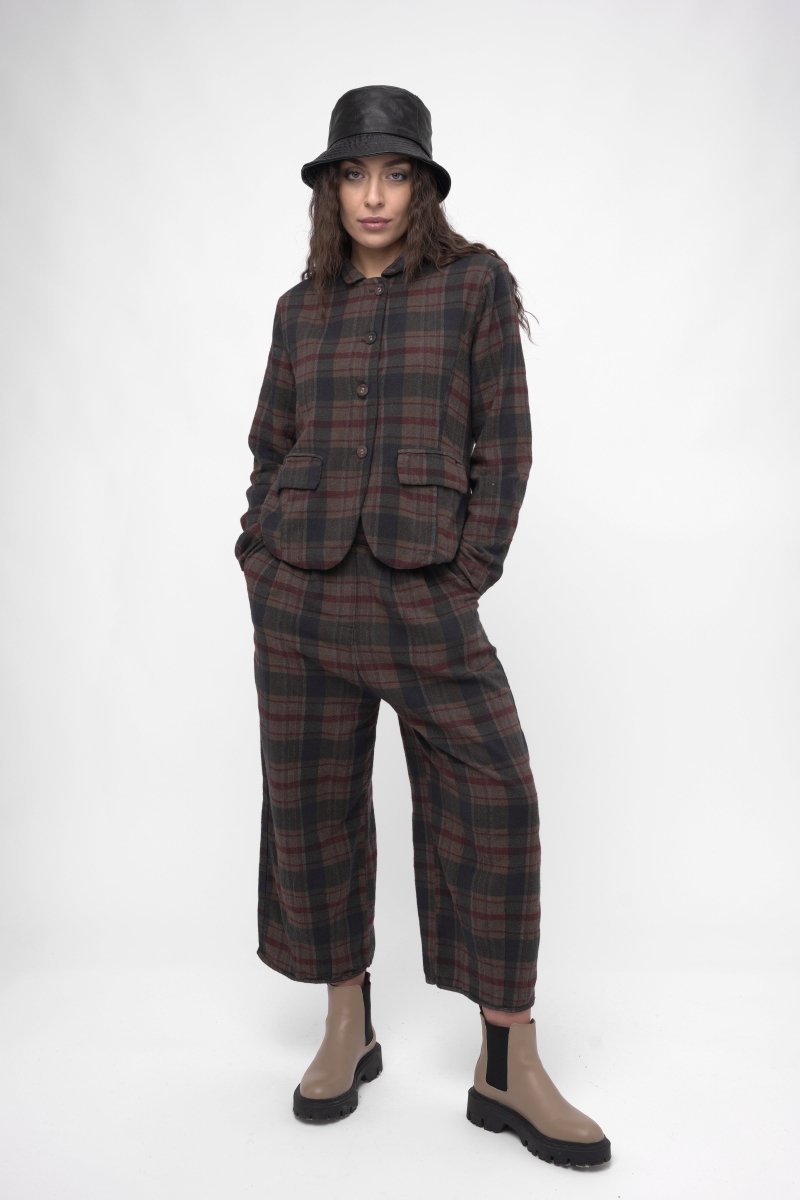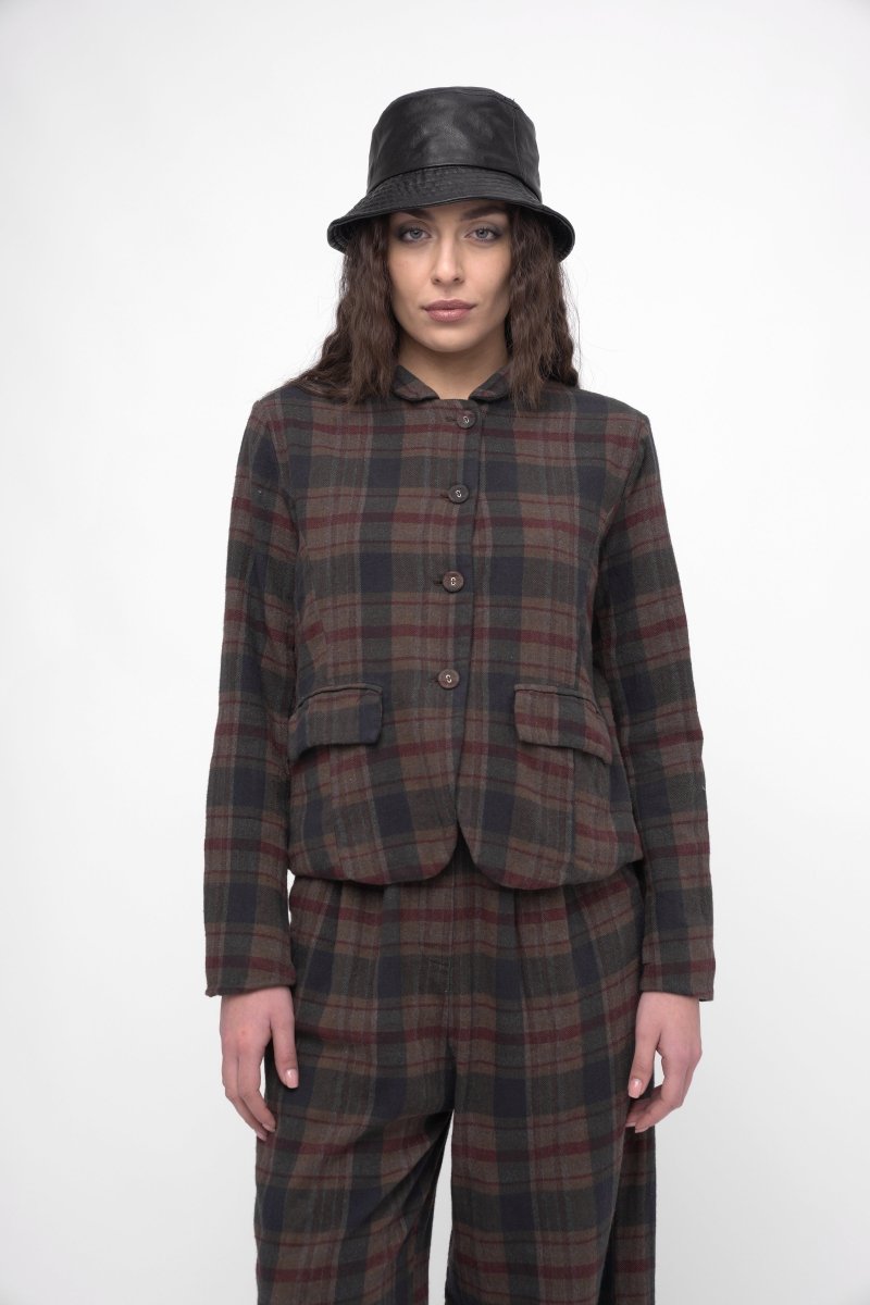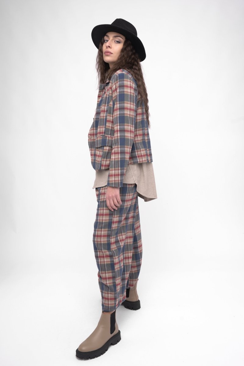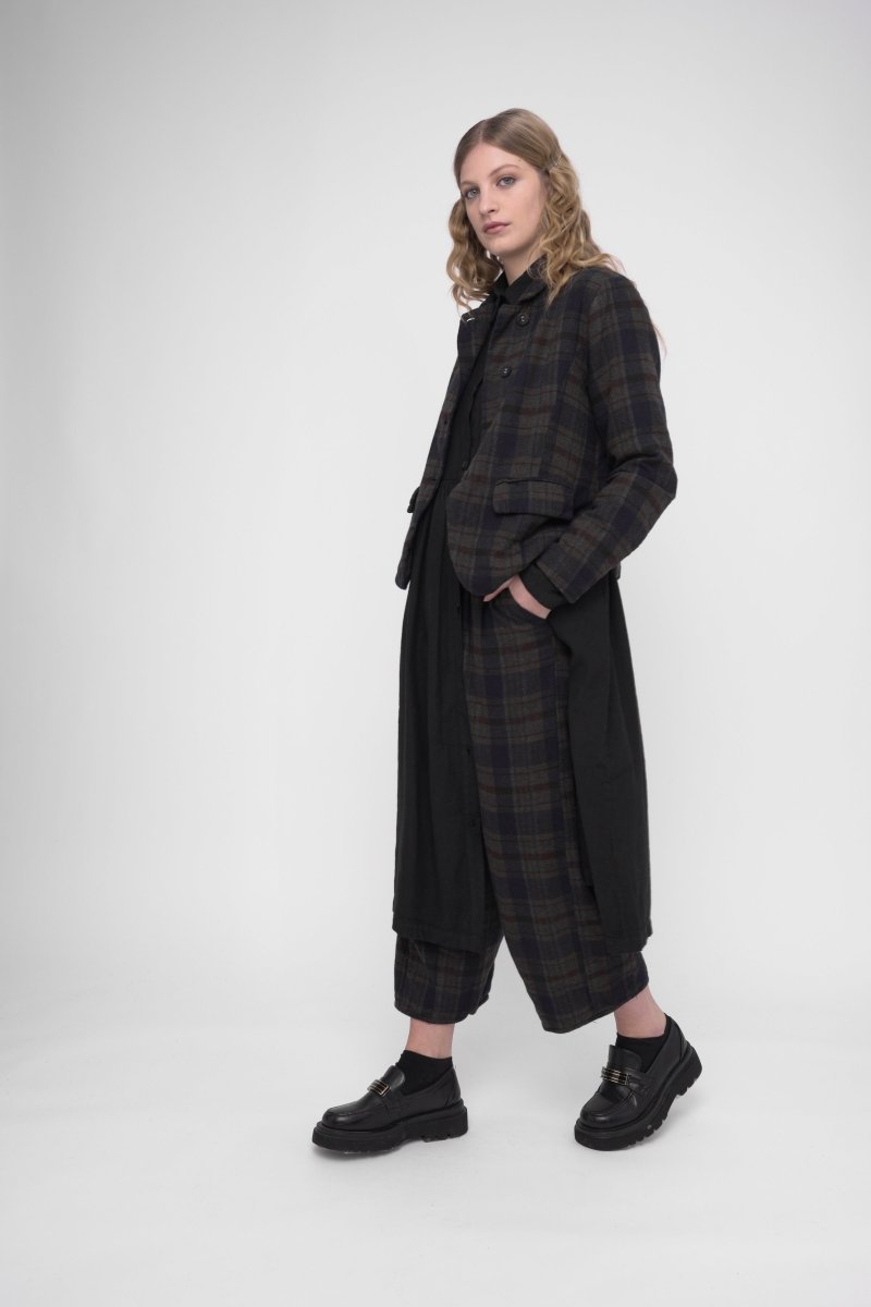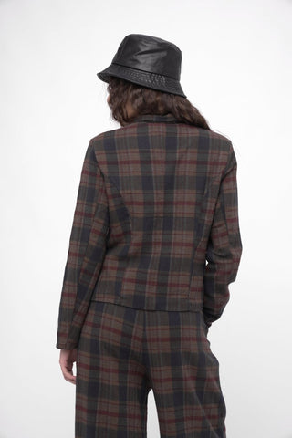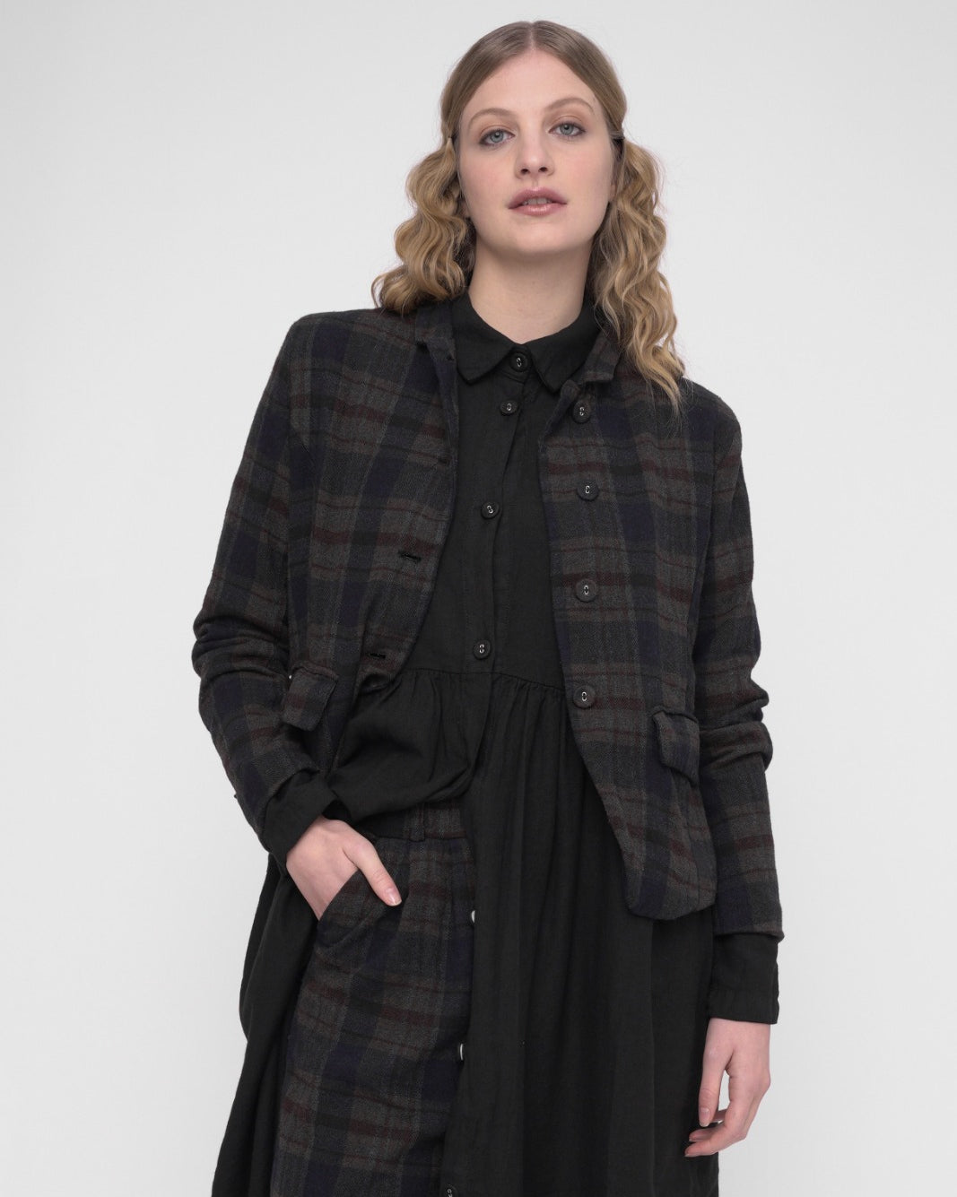 Enhance your style and stay cozy during the fall and winter season with this jacket featuring a trendy plaid pattern. Dress this jacket up in various ways to suit any occasion. For a casual and chic look, layer it over a basic tee, paired with jeans and ankle boots. Add a scarf or statement jewelry to elevate the outfit. For a more dressed-up ensemble, wear it with tailored trousers, a blouse, and heels for a sophisticated and polished appearance.