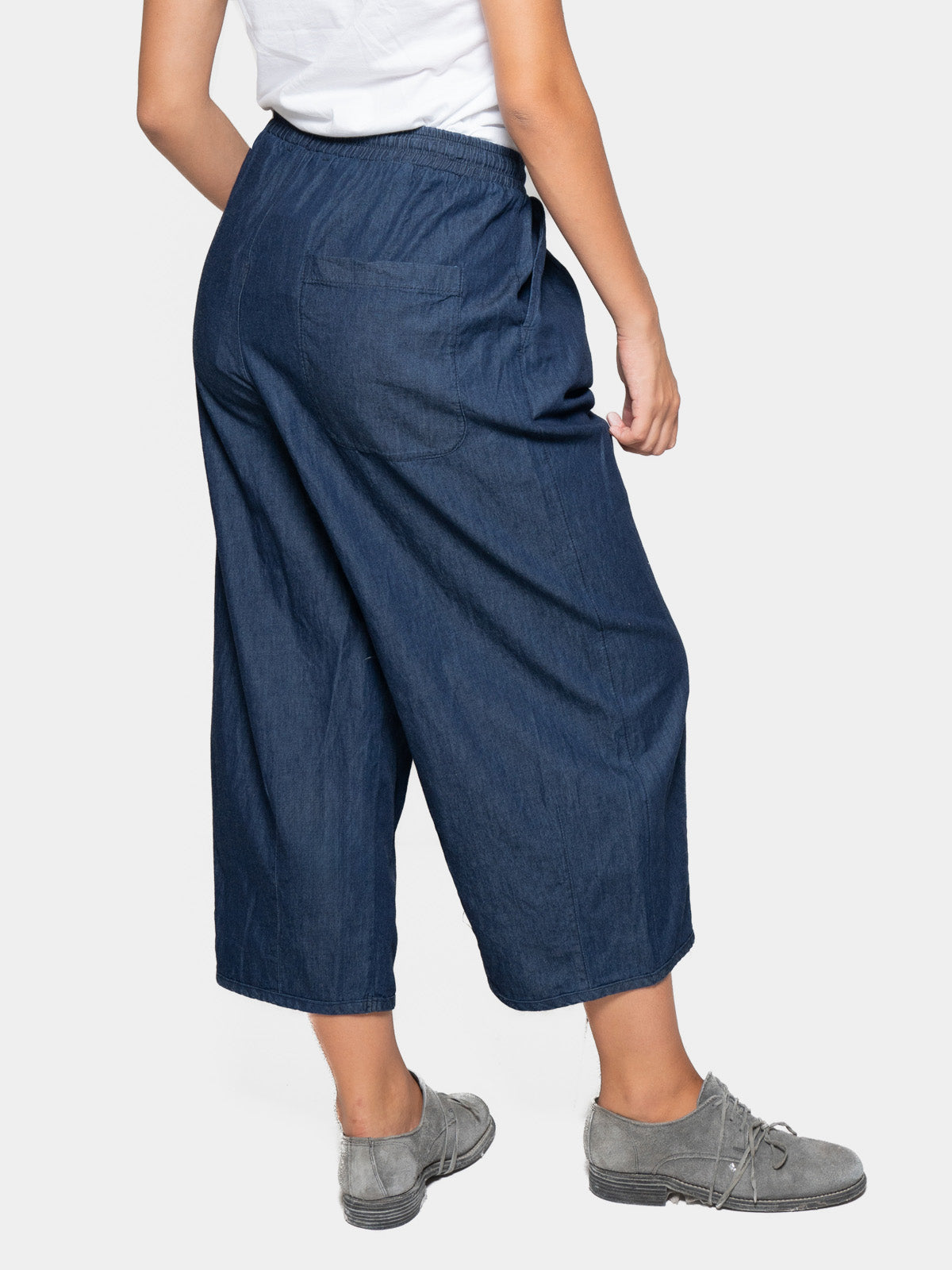 Experience the joy of on-trend comfort as you navigate your day with ease. This culotte embodies a casual sophistication that seamlessly transitions from laid-back moments to more refined settings. They are known for their versatility and can be dressed up or down, making them suitable for both casual and semi-formal settings. The wide-legged silhouette provides a graceful sway with each step, mimicking the fluidity of a skirt while retaining the practicality of pants. Combining the culottes with a simple and casual T-shirt creates a laid-back everyday look with sneakers or sandals. For a more sophisticated appearance, pair the culottes with an elegant blouse adding a pair of high heels for an extra touch of elegance. Fit: Relaxed. Details: Elastic tie waist, culotte style. Fabric: Woven, 100% Cotton. Model: 1.71 meters = 67.3228 inches wearing size S