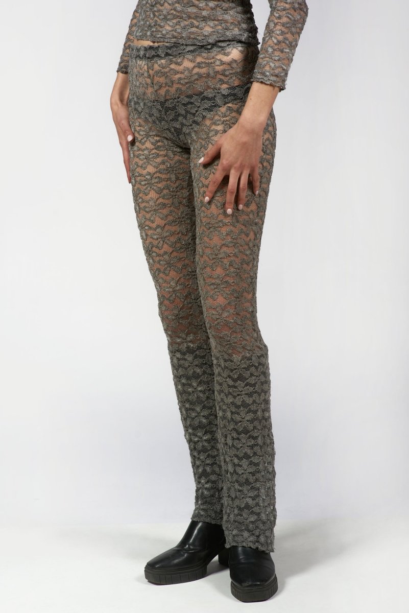 These flower lace pants are designed to make a statement. Crafted from delicate all-over floral lace, they hug the body with a flattering, elongated silhouette. Pairs perfectly with lingerie, bodysuits, or layered looks.