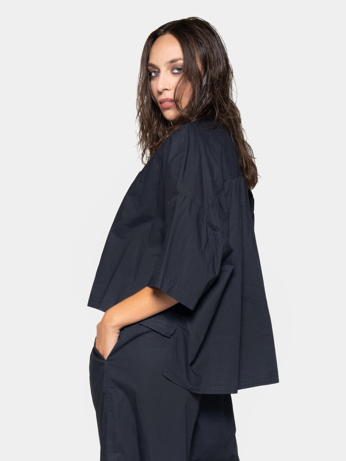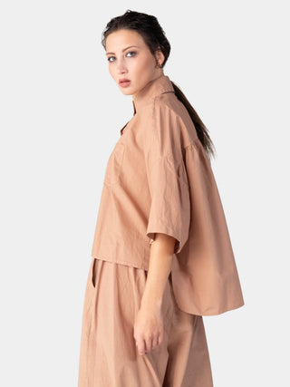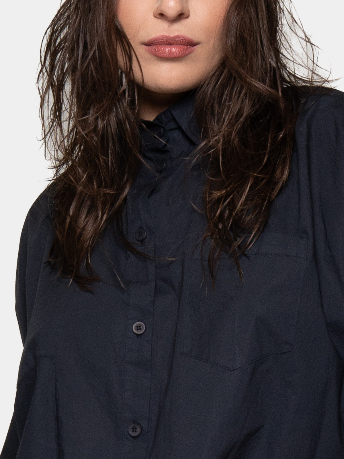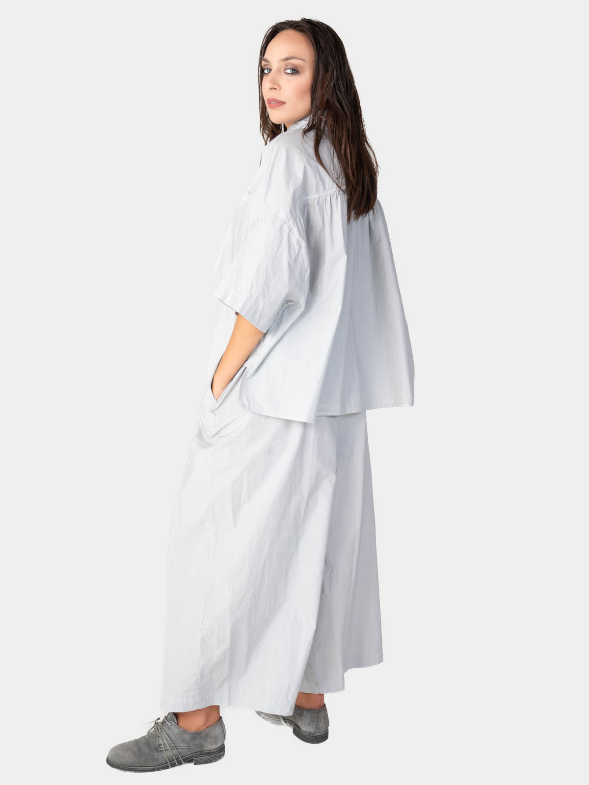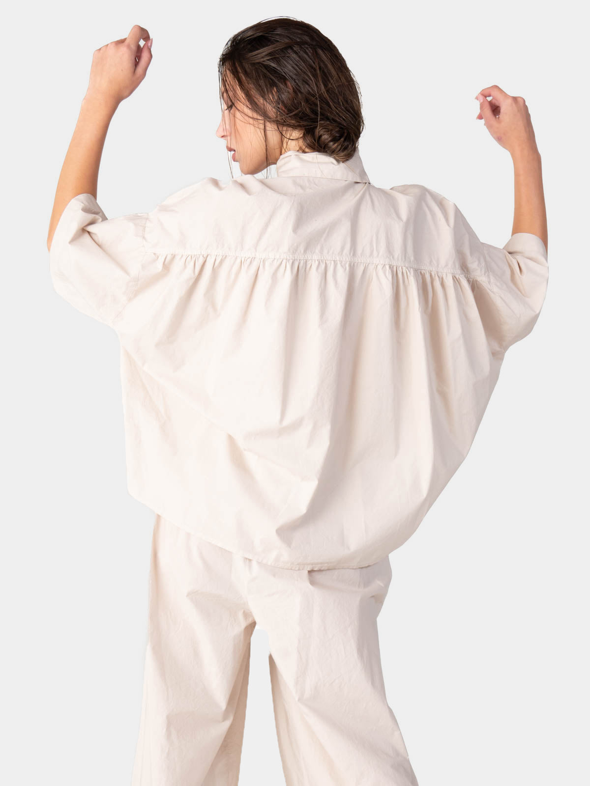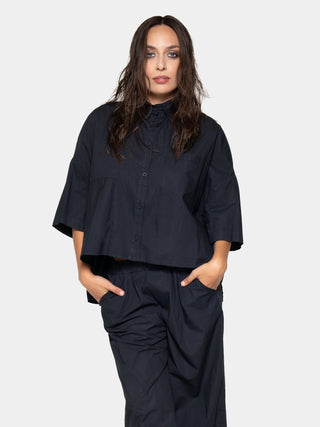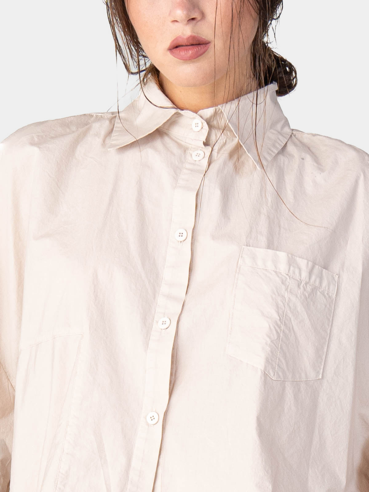 Center your outfit around the Hi-Lo Organic Cotton Cropped Shirt, a staple that serves as the perfect base for any look. The loose fit of the top and the cotton fabric makes it perfect for the summer and easy to style. The traditional button down silhouette gives it that classic look whereas the cropped bottom gives it a bit of edge. Pair it with a loose trouser for that breathable look or style it with a form fitting bottom for a more balanced vibe.