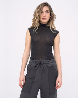 This turtleneck top also features a slightly sheer design, adding a touch of allure and intrigue to your outfit. Whether you choose to layer it or wear it on its own, this subtle sheerness adds a hint of playfulness to your look.
