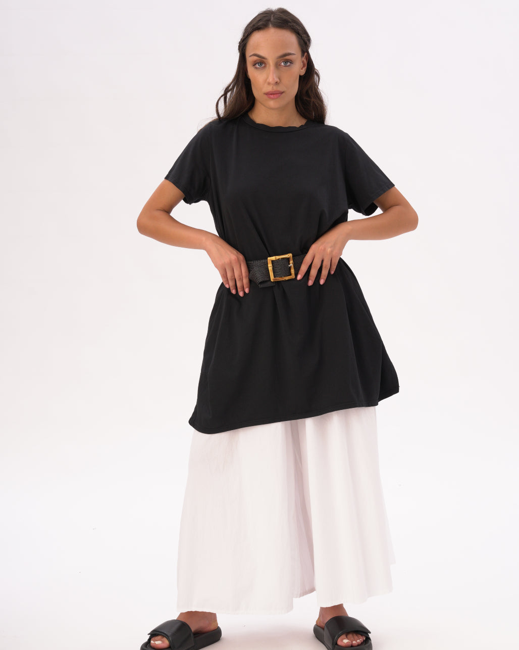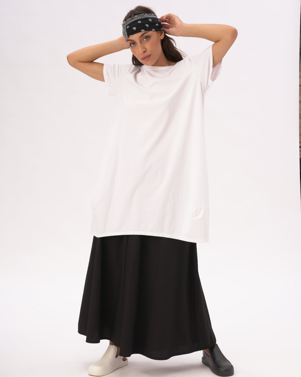 Comfort never goes out of style with this simple cotton t-shirt dress. A perfect basic that can be worn any season. Pair this dress with your favorite statement belt and tights for a night on the town or wear it by itself to run your errands. This 100% cotton dress with pockets is a staple for everyone's wardrobe this season.