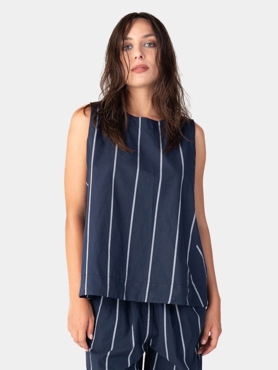 Embrace the Warm summer sun in the Striped Hi-Lo Tank Top. A piece simple enough to be styled all throughout the season. The loose fitting silhouette and cotton material make it perfect for the season. Pair it with the matching Striped Elastic Tie Waist Culottes to match the Italian vibe and complete the ensemble. Or style it with a pair of white denim for that classic summer vibe. A tank that will soon become a staple in anyone's wardrobe.