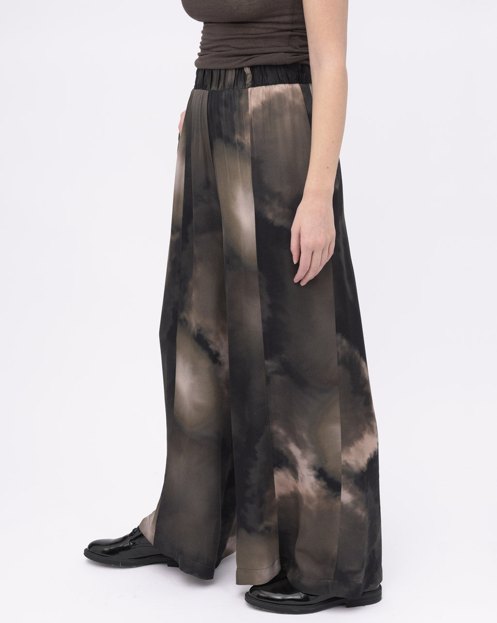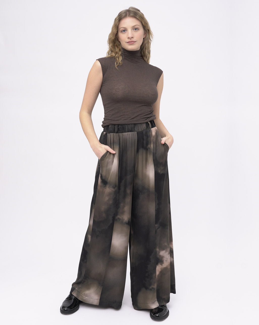 Handcrafted with precision, these pants boast a mesmerizing brown tie-dye print that adds an enchanting allure to any outfit. The relaxed fit and wide leg design ensure maximum comfort while the elastic waistband guarantees a secure and flexible fit, perfect for all-day wear. Style it with a simple tee and sandals for a carefree daytime look or dress it up with heels and a blouse for a fashionable night out.