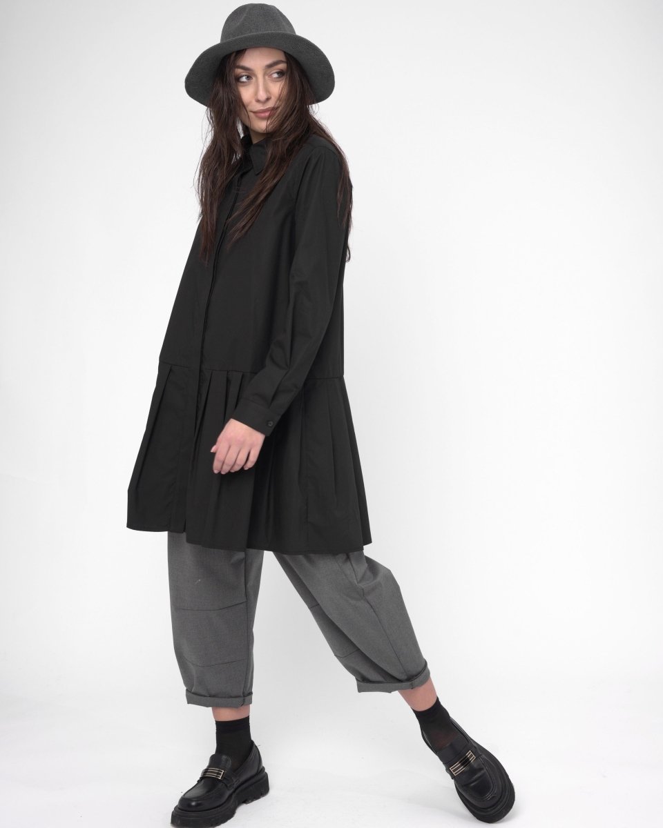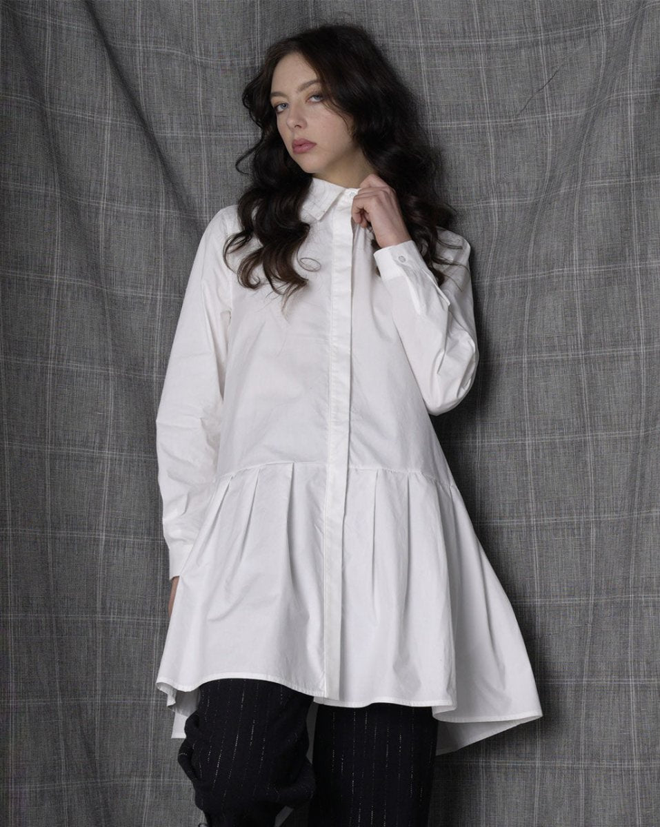 Make a statement in fashion while being ethical with this must-have dress. Made from 100% organic woven cotton, this collared button up shirtdress features a pleat detail at the bottom of the shirt adding a unique and edgy flair. This dress can be dressed up with heels and statement jewelry or dressed down over a pair of pants with sneakers for a more casual look.