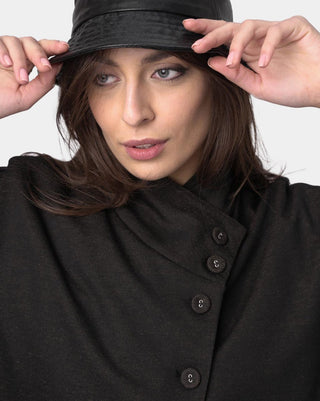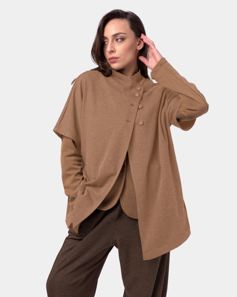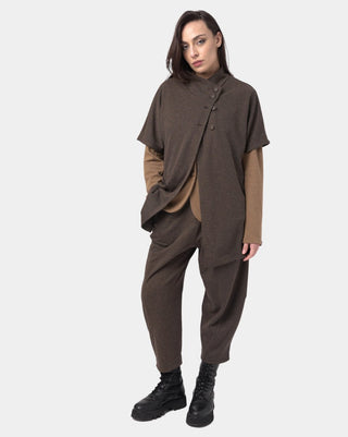 With a relaxed fit and unique three-button detail at the top, this shirt is an effortless statement piece. The asymmetrical front adds a special touch to the already stylish design. Wear it with a pair of high waisted jeans or a skirt for a chic and fashionable look.