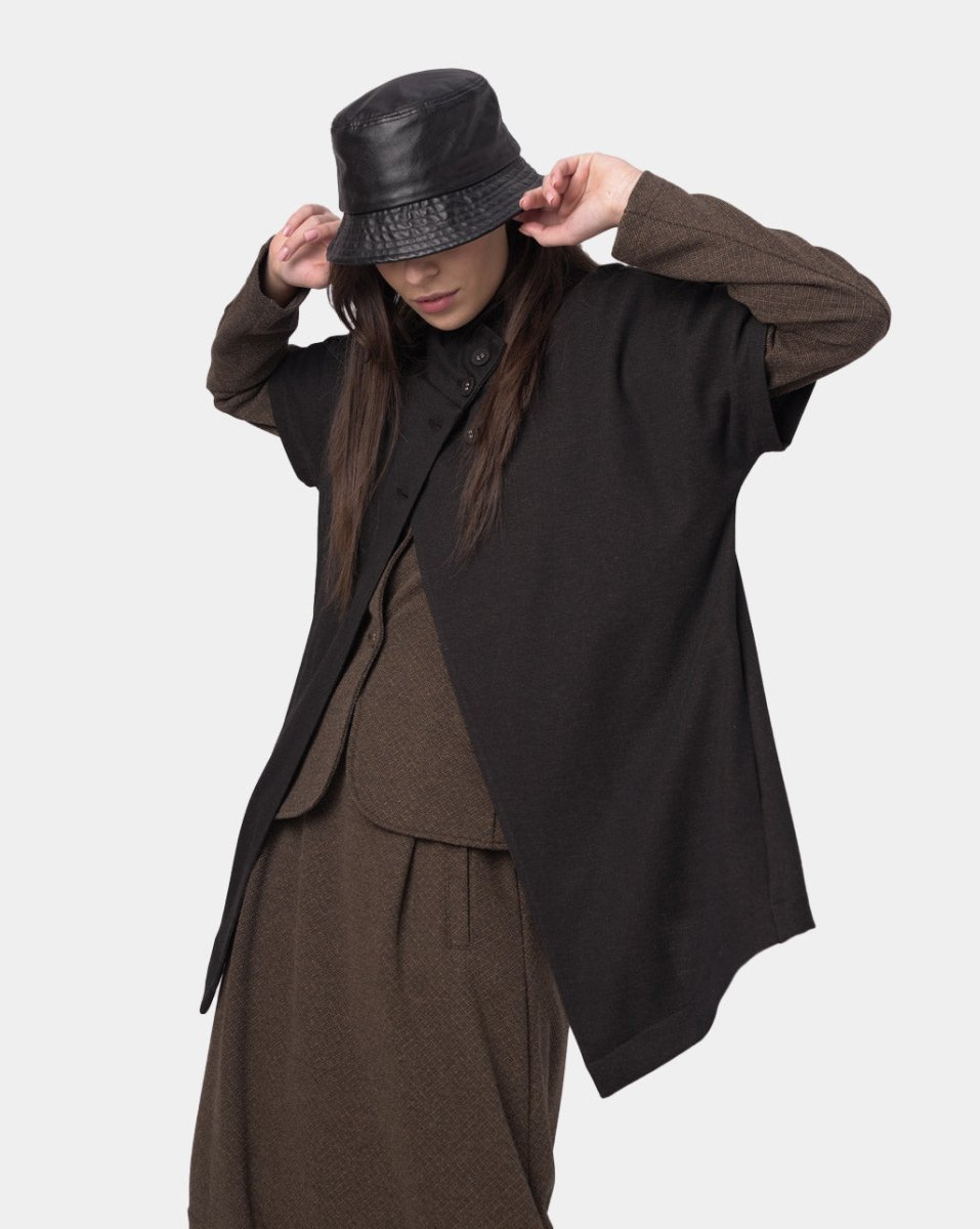 Details: Buttons, Asymmetric Hemline.
