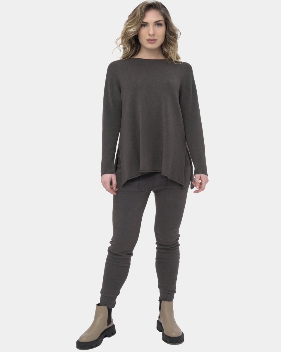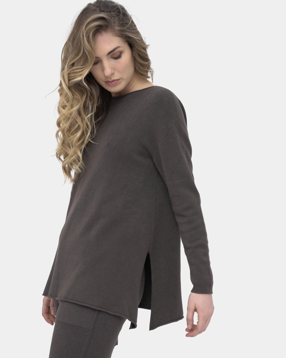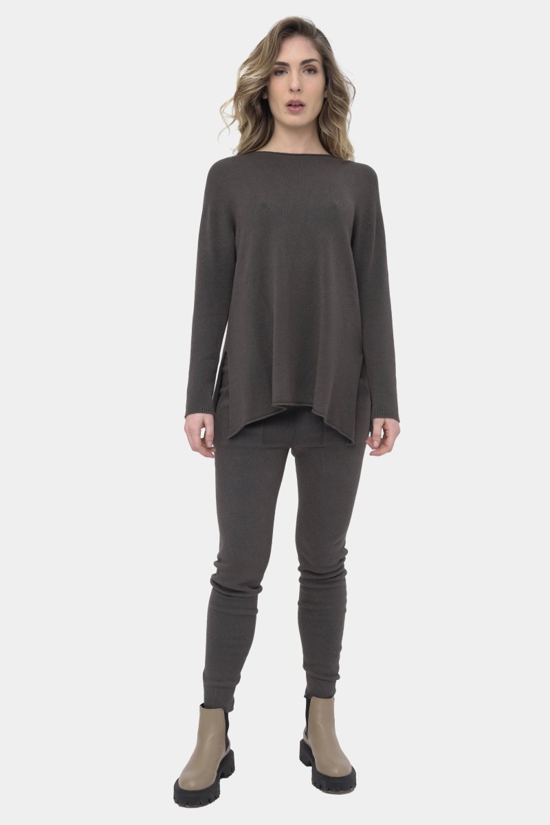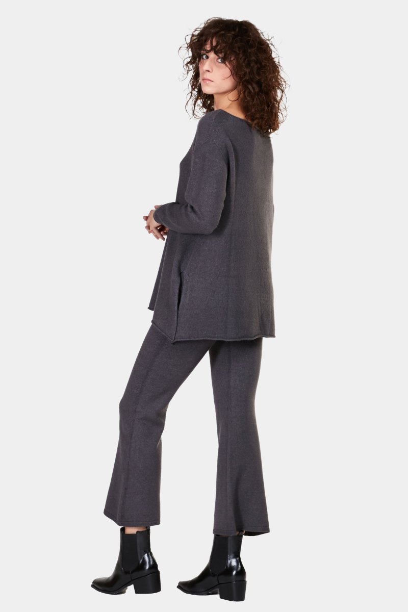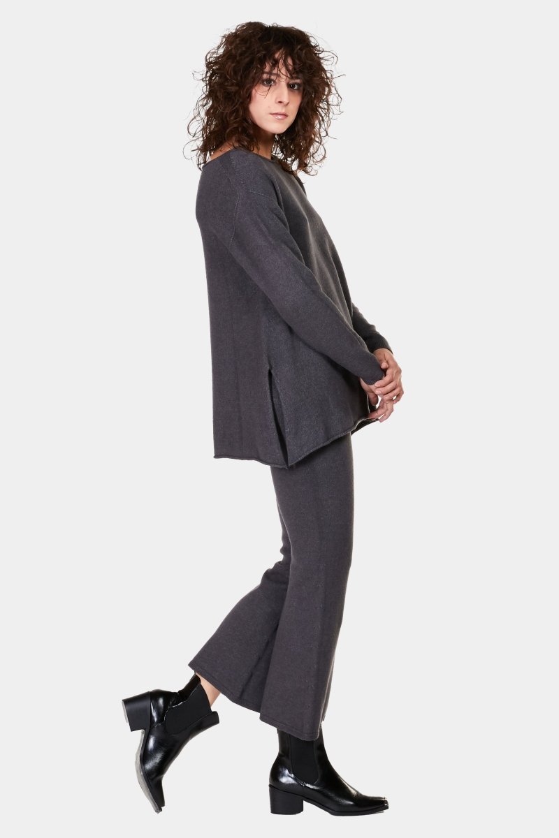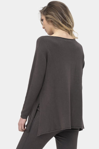 The Boatneck Split Seam Sweater is an essential for your fall/winter wardrobe. Made with a unique fabric blend allows the sweater to feel soft on the skin. Having some stretch and the softness compliments the loose silhouette. Boatneck and the split seam add to the classic silhouette. It is an essential piece for the season that can be worn by itself or is the perfect layering piece for the cooler days of the season.