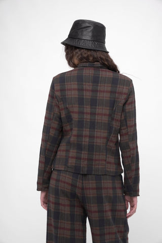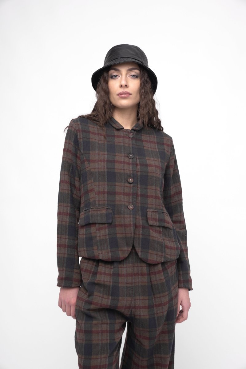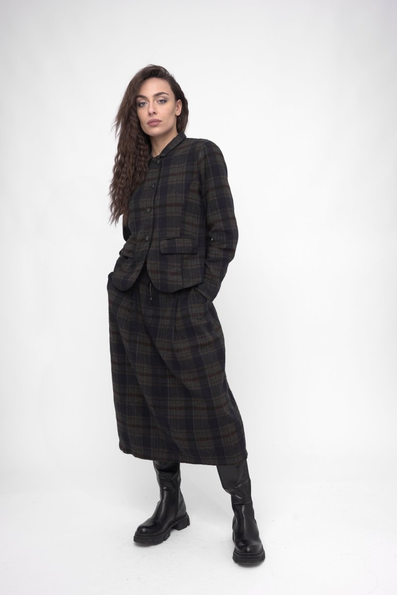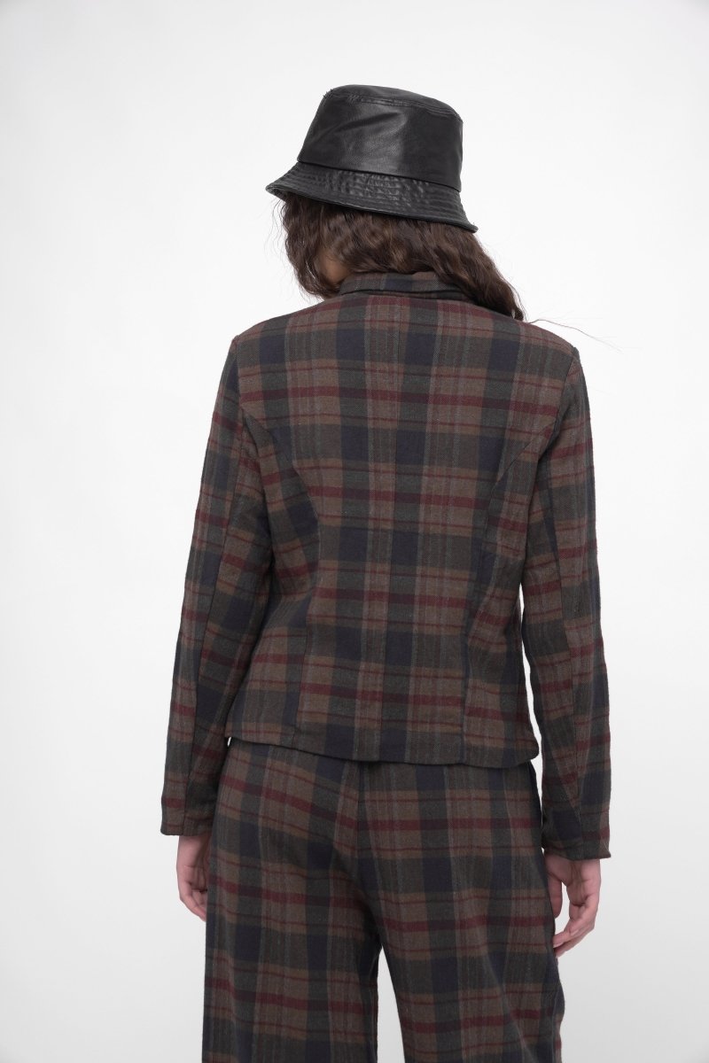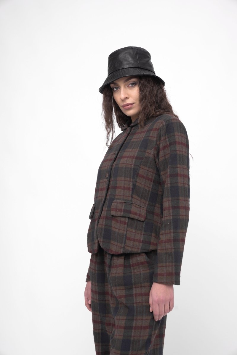 Enhance your style and stay cozy during the fall and winter season with this jacket featuring a trendy plaid pattern. Dress this jacket up in various ways to suit any occasion. For a casual and chic look, layer it over a basic tee, paired with jeans and ankle boots. Add a scarf or statement jewelry to elevate the outfit. For a more dressed-up ensemble, wear it with tailored trousers, a blouse, and heels for a sophisticated and polished appearance.