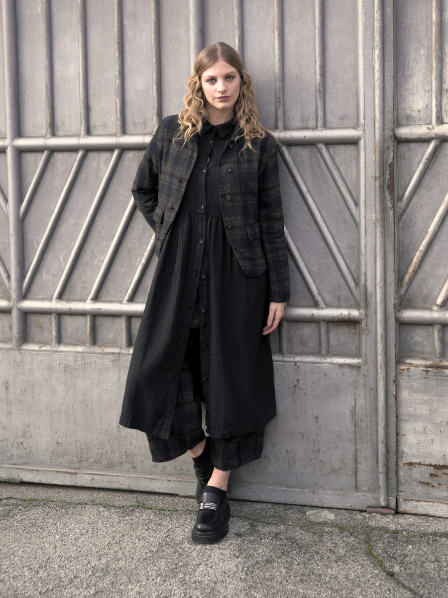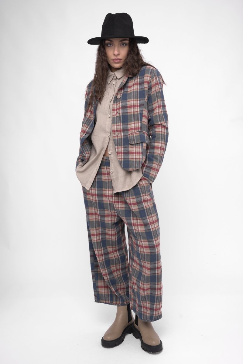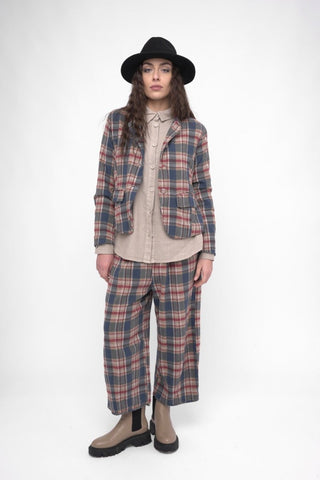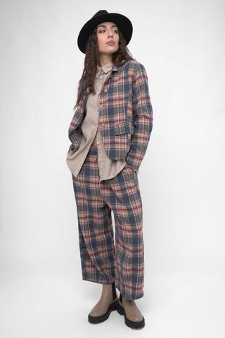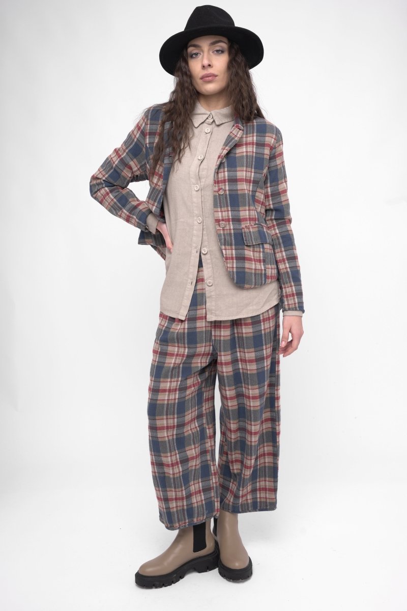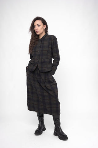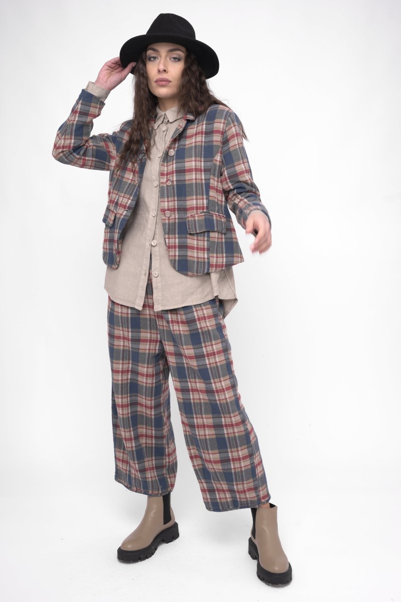 Enhance your style and stay cozy during the fall and winter season with this jacket featuring a trendy plaid pattern. Dress this jacket up in various ways to suit any occasion. For a casual and chic look, layer it over a basic tee, paired with jeans and ankle boots. Add a scarf or statement jewelry to elevate the outfit. For a more dressed-up ensemble, wear it with tailored trousers, a blouse, and heels for a sophisticated and polished appearance.