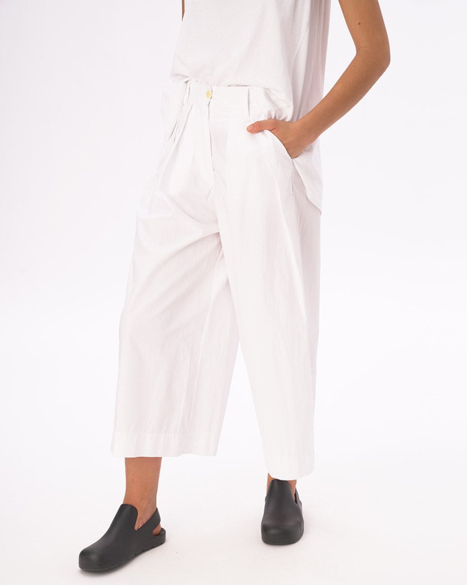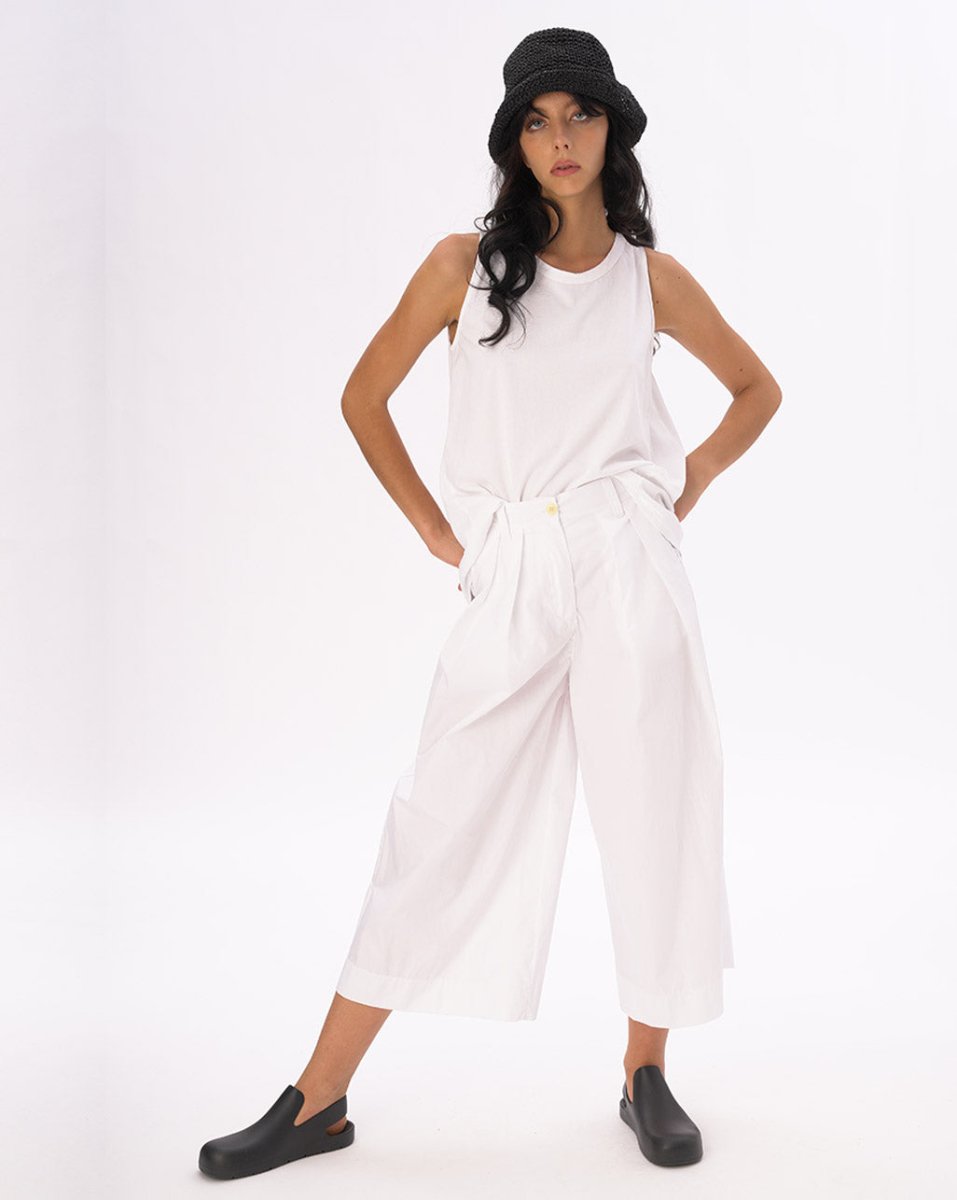 Cool off with these cotton pleated palazzo pants. Pair these with virtually any simple top for a chic yet simple look. With such a breathable fabric and a cropped bottom, these lightweight pants are perfect for a warm summer day.